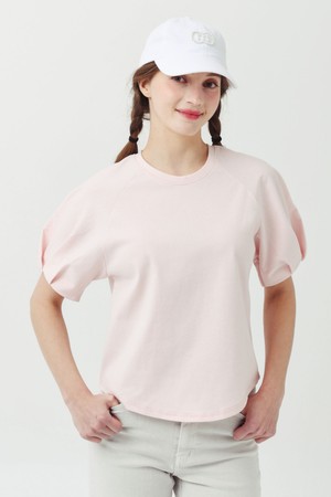 나글란 퍼프 소매 스피링 핑크 라운드 티셔츠