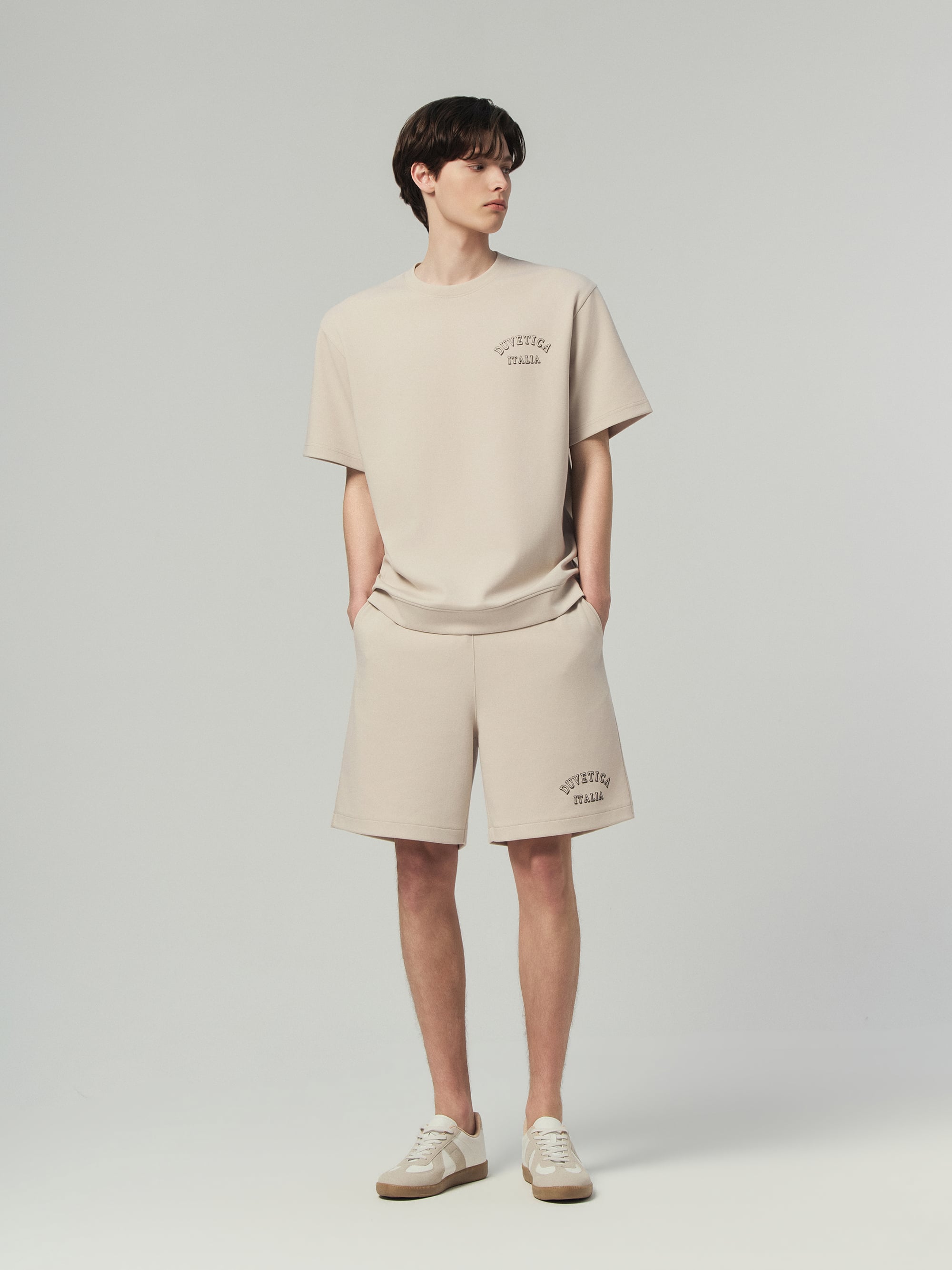 - 브랜드의 시그니처 이중지 소재를 사용한 트레이닝 숏츠
