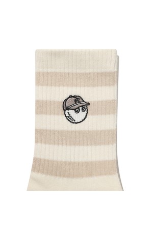 언발란스 스트라이프 와펜 크루 삭스 BEIGE
