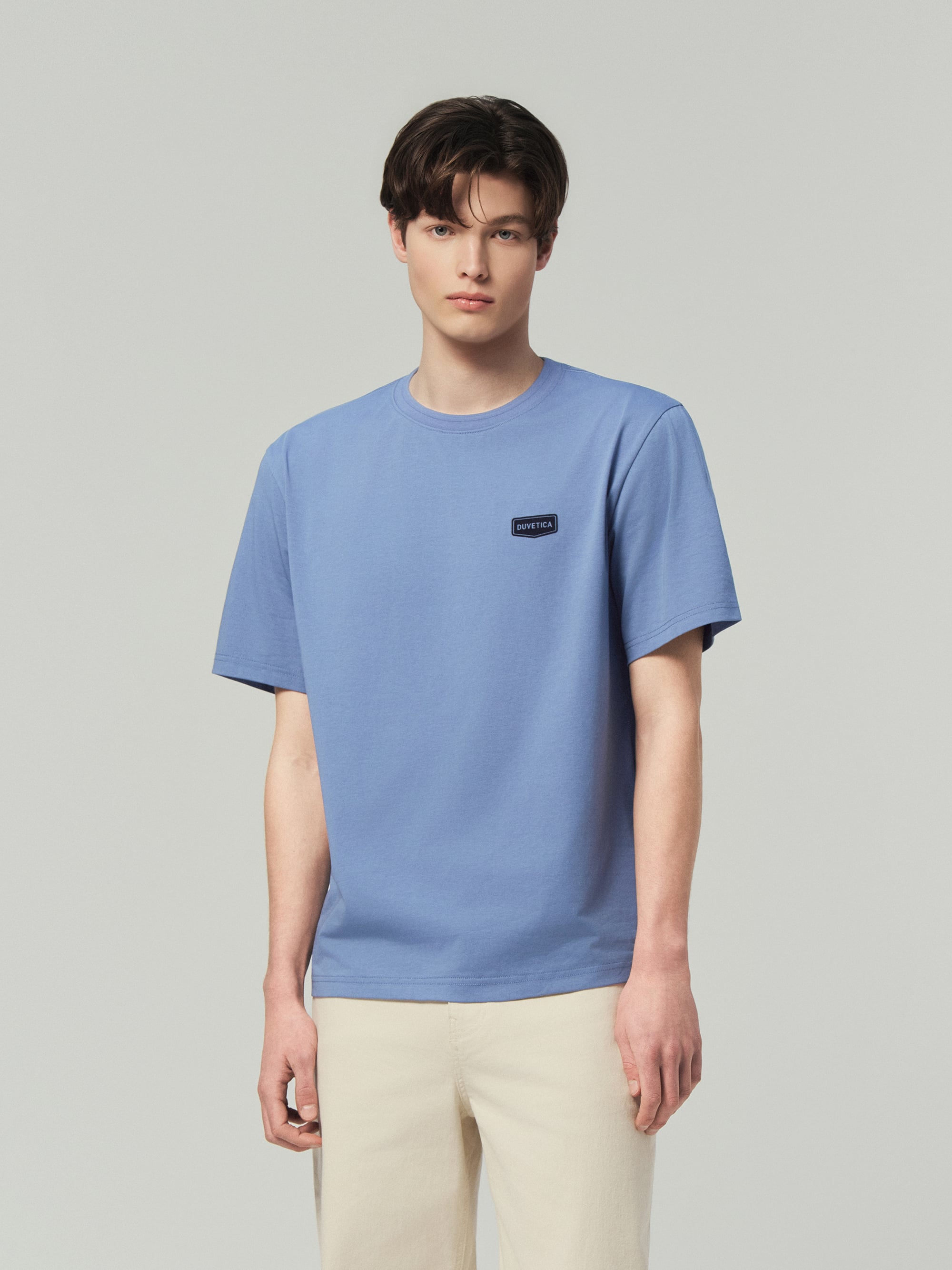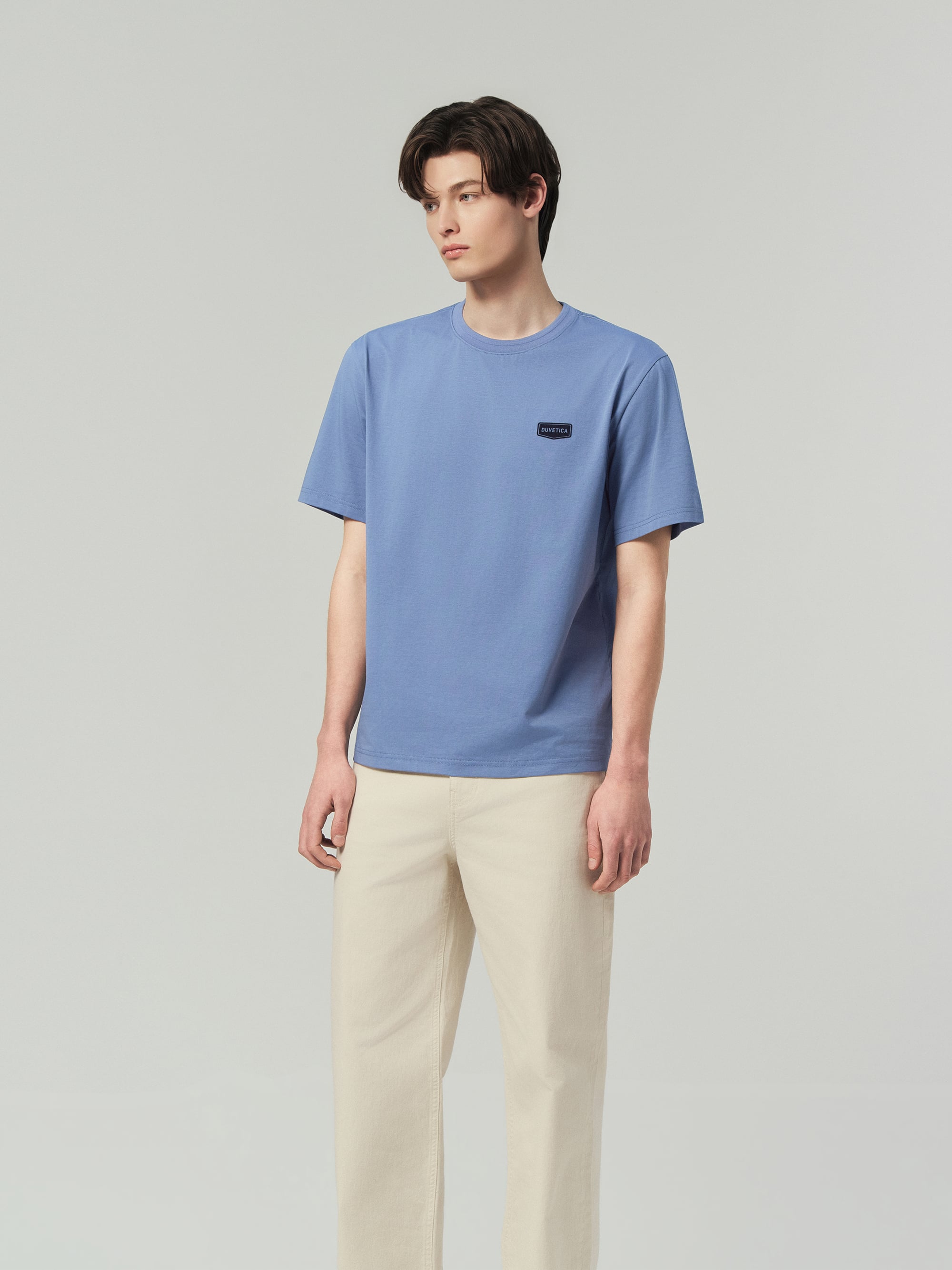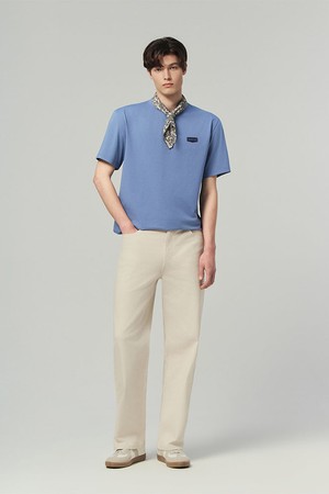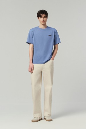 - 세미오버 핏의 라운드넥 반팔티셔츠
