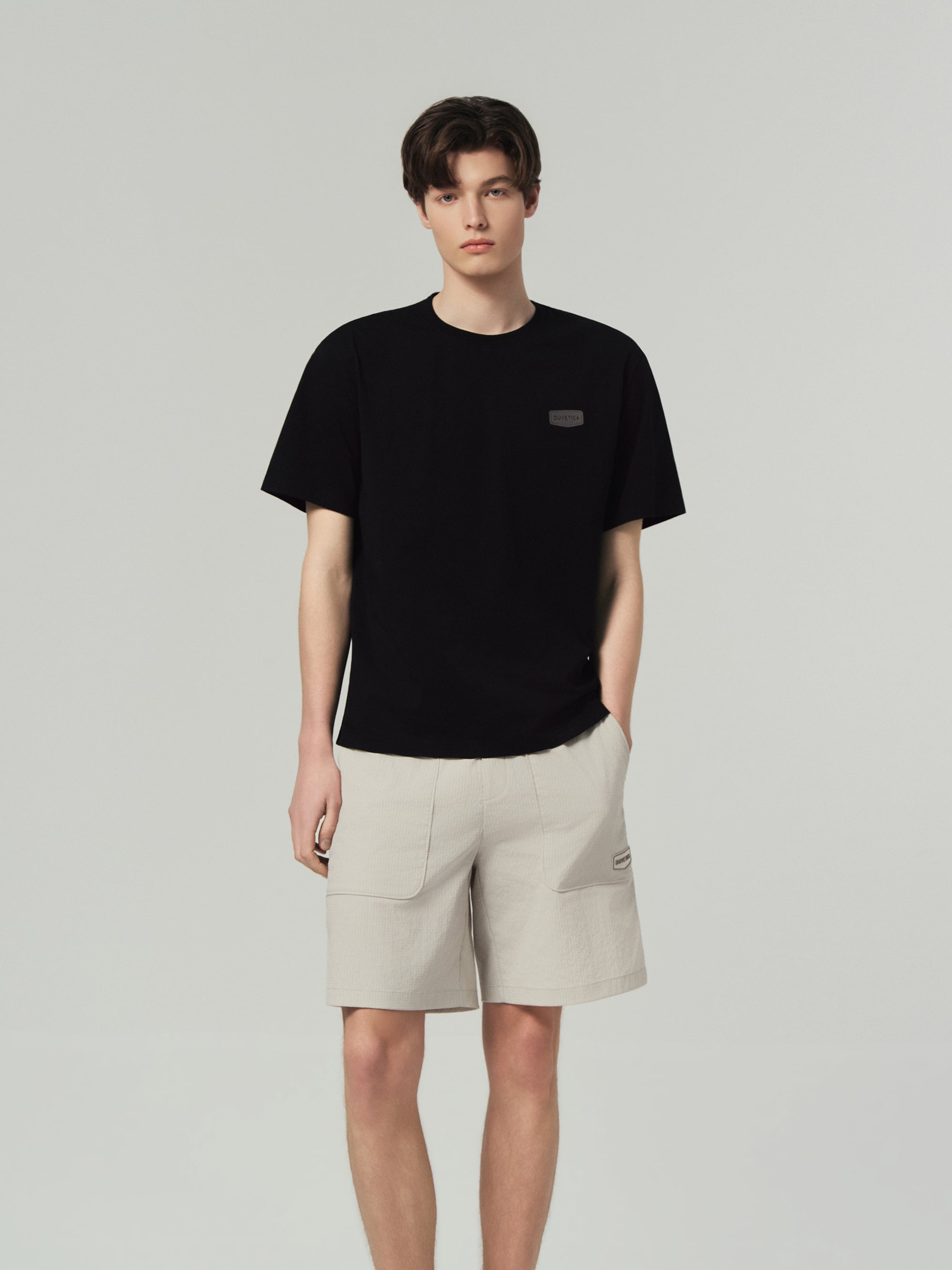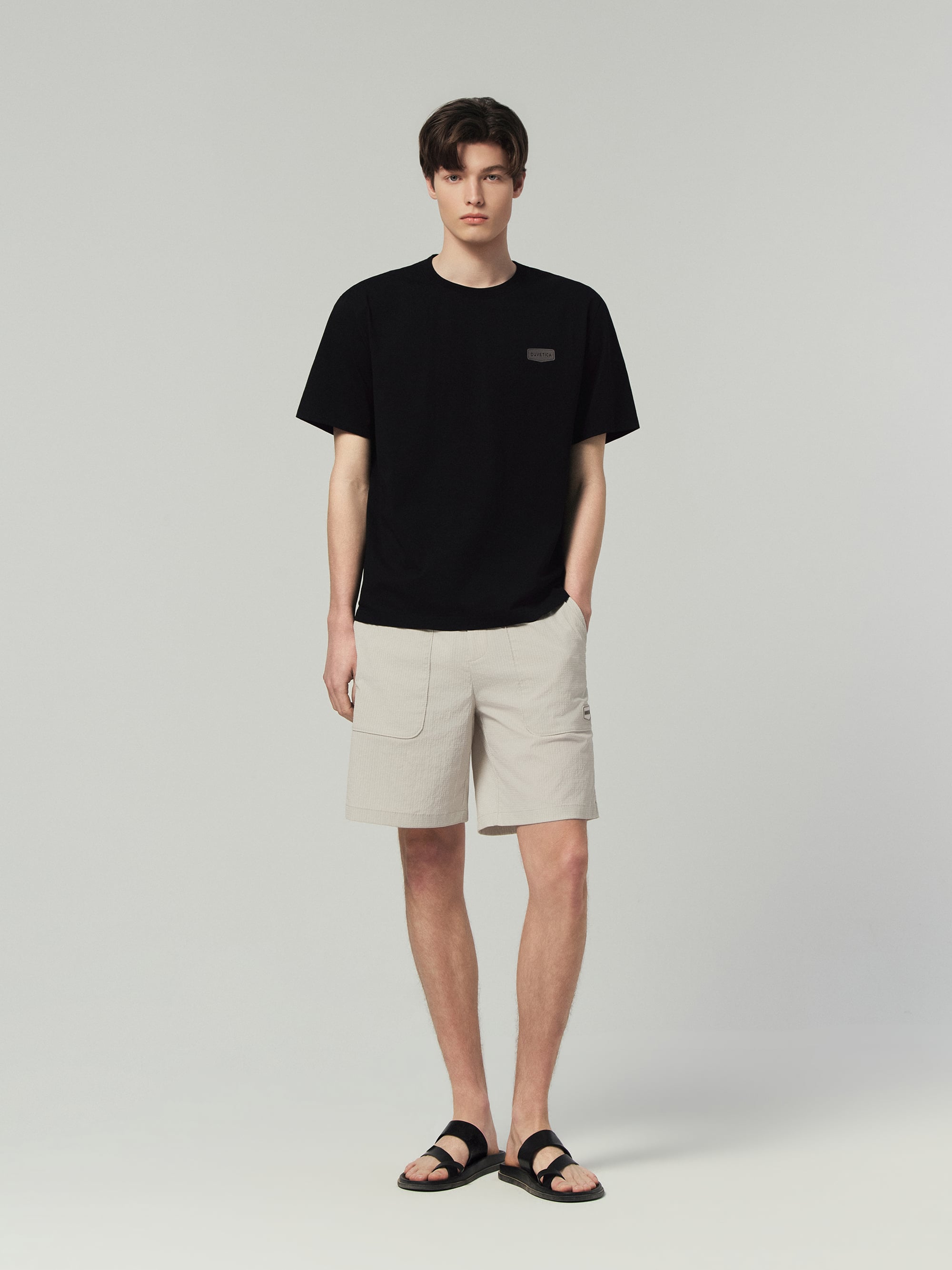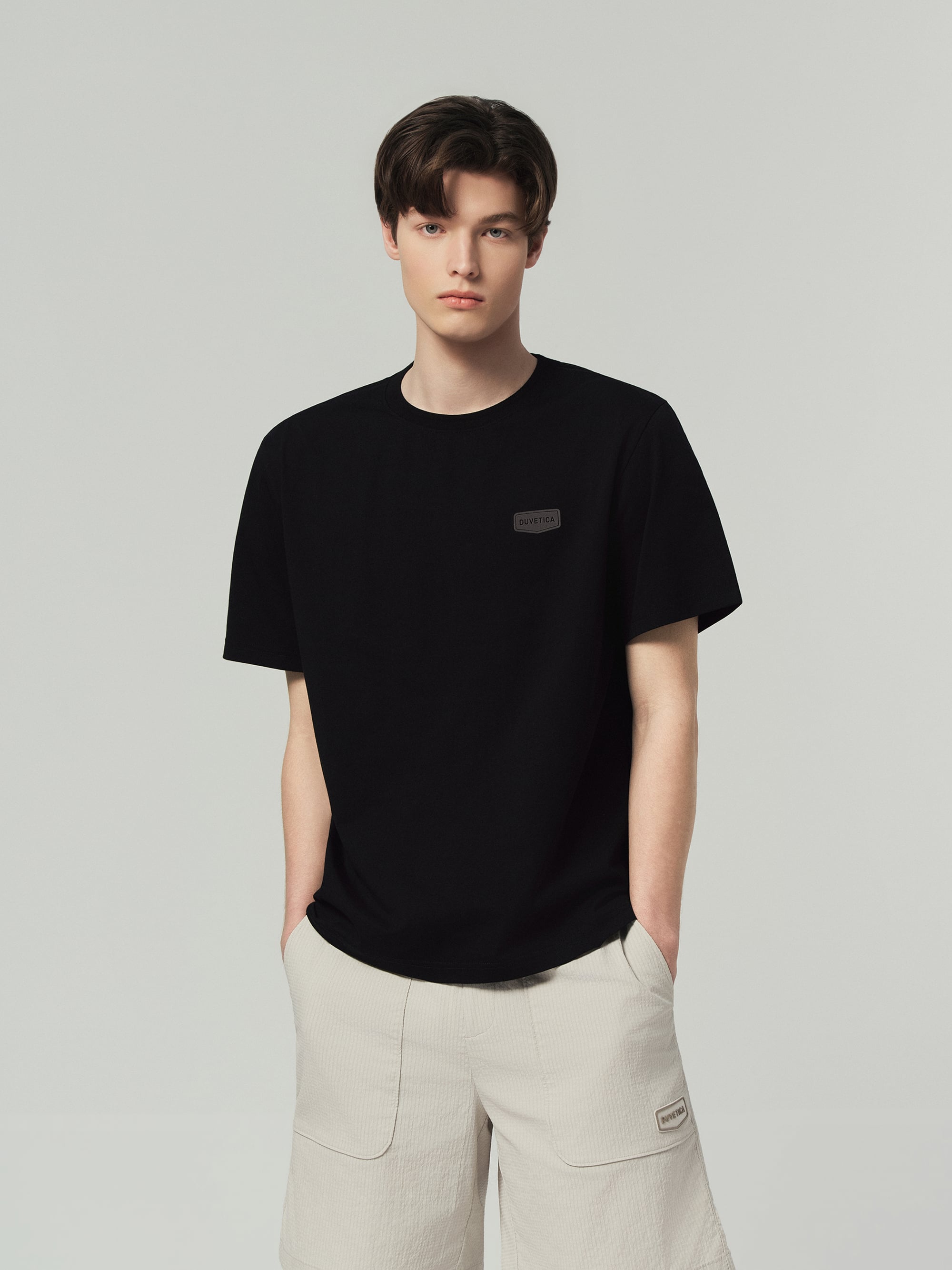 - 세미오버 핏의 라운드넥 반팔티셔츠