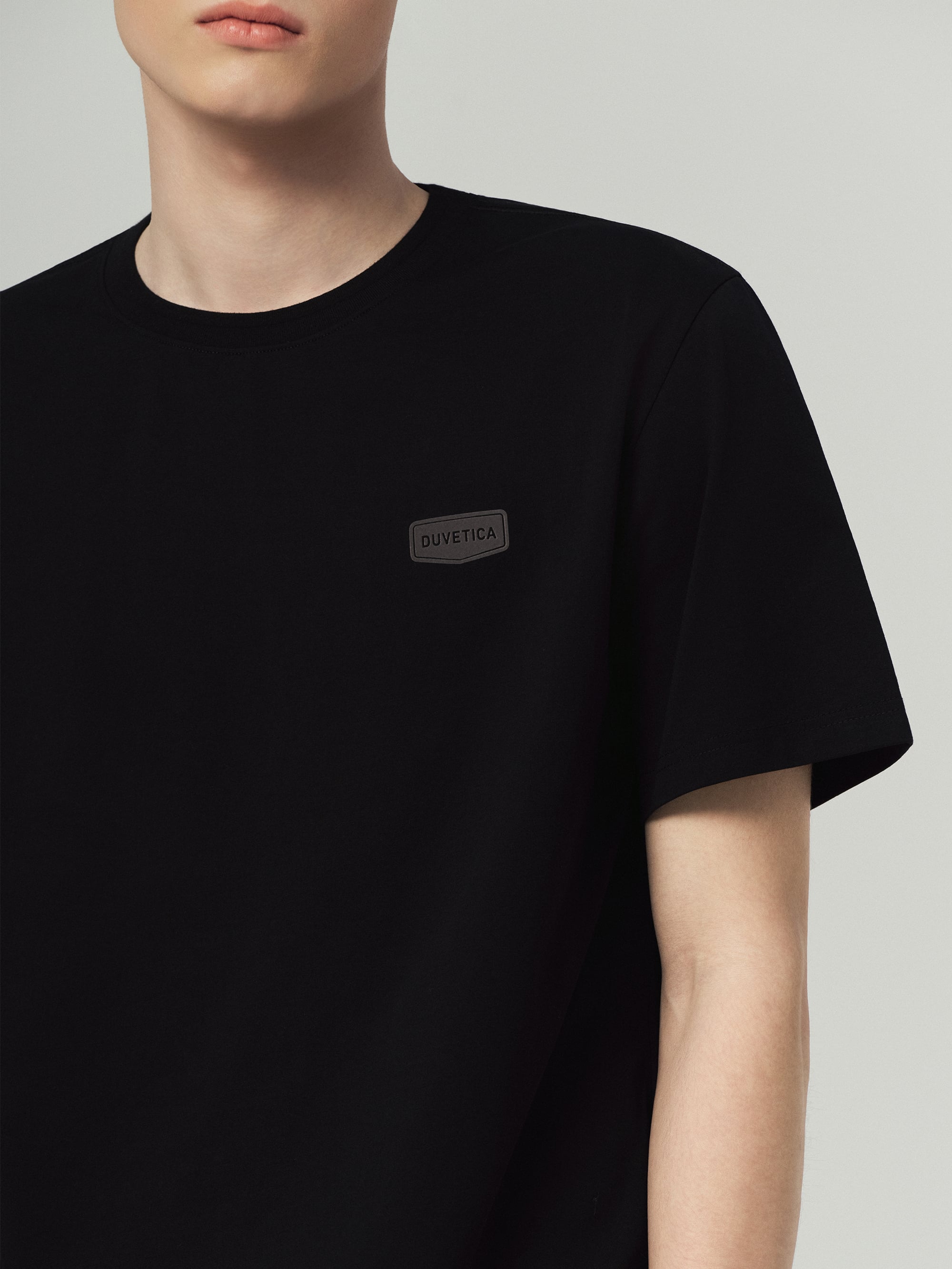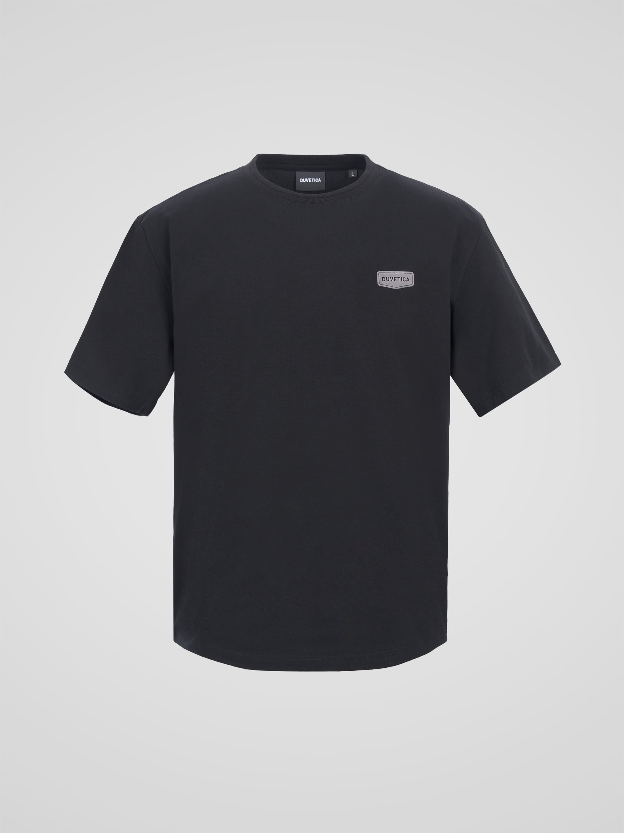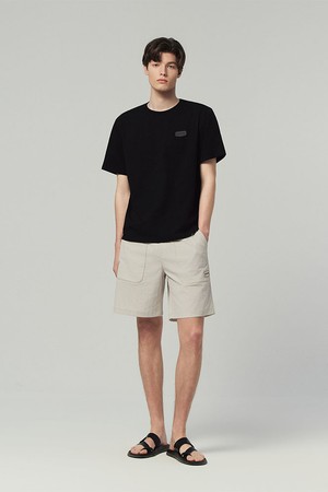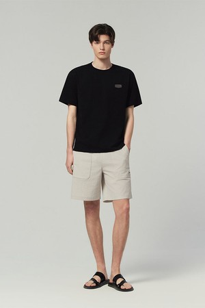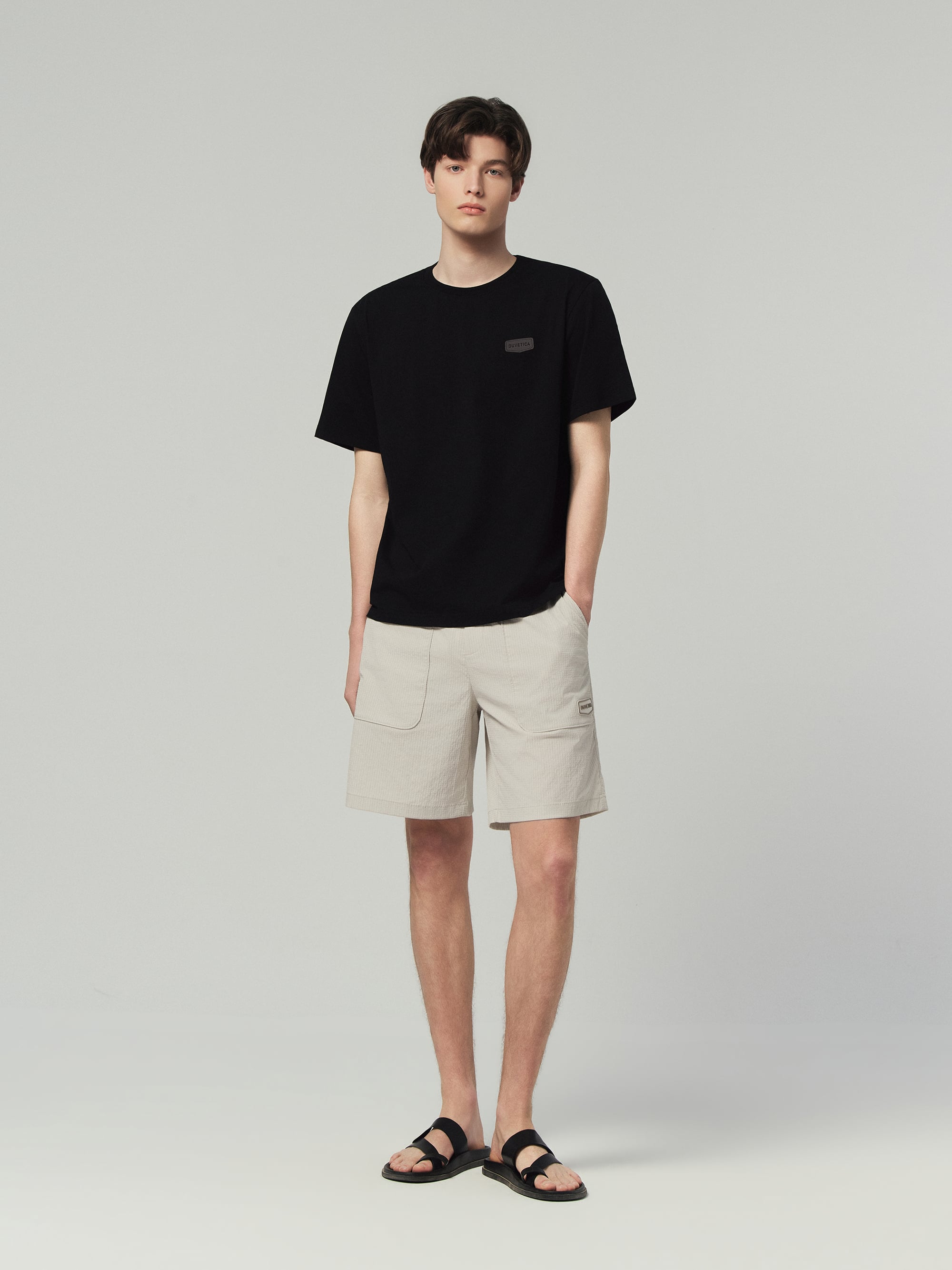 - 세미오버 핏의 라운드넥 반팔티셔츠