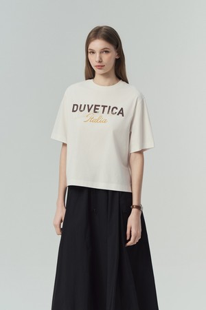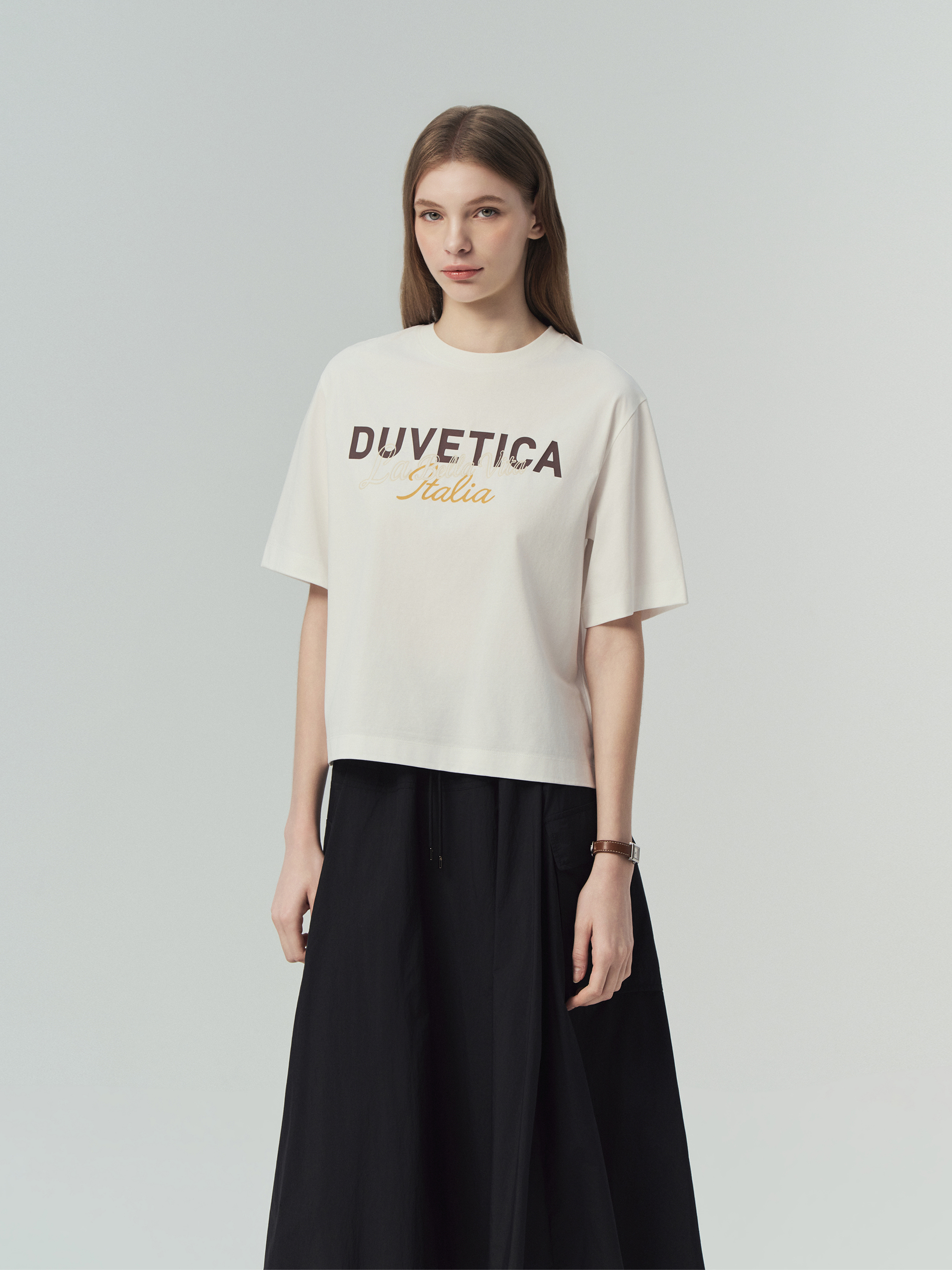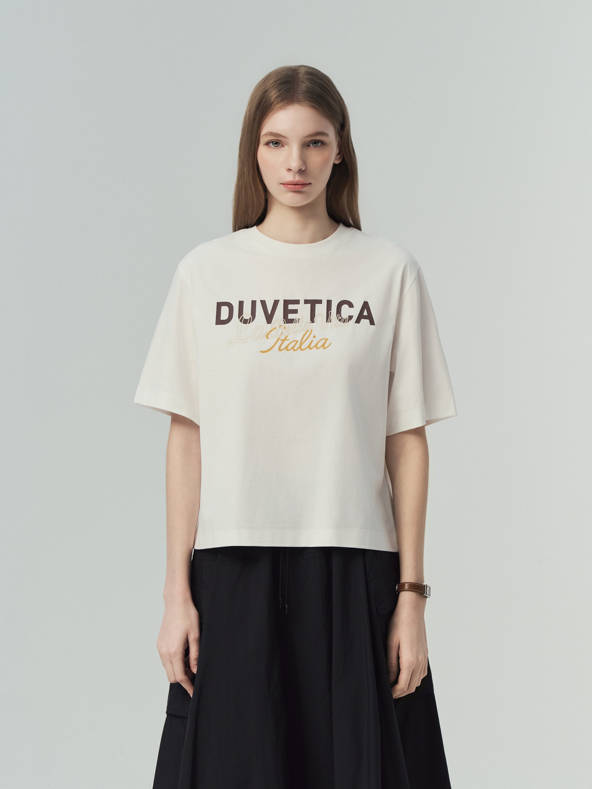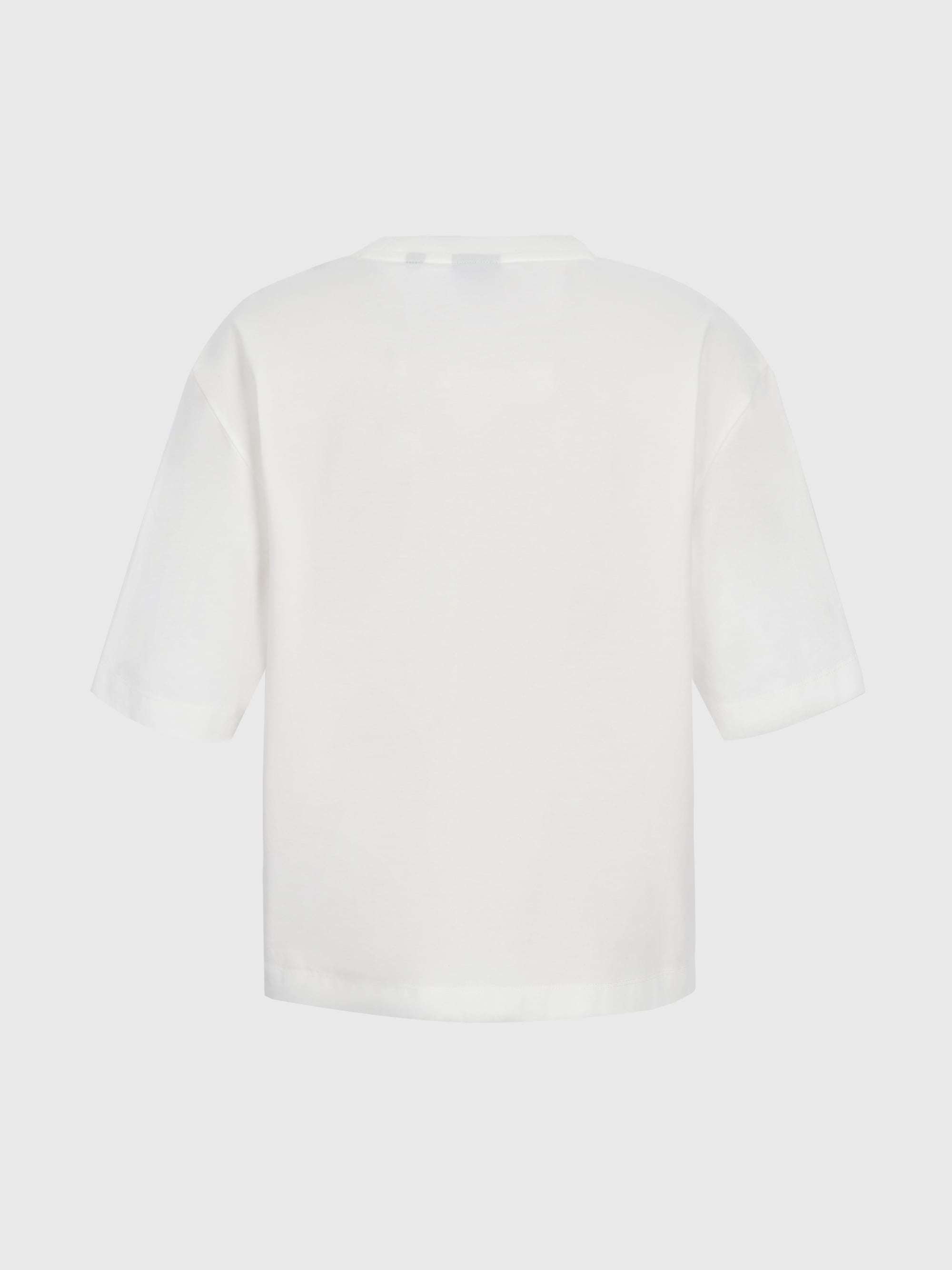 - 오버핏 크롭 기장과 드롭 숄더 라인으로 여유로운 핏감의 여성용 라운드넥 반팔티셔츠