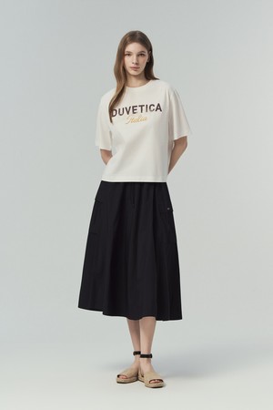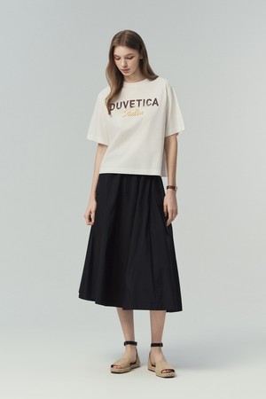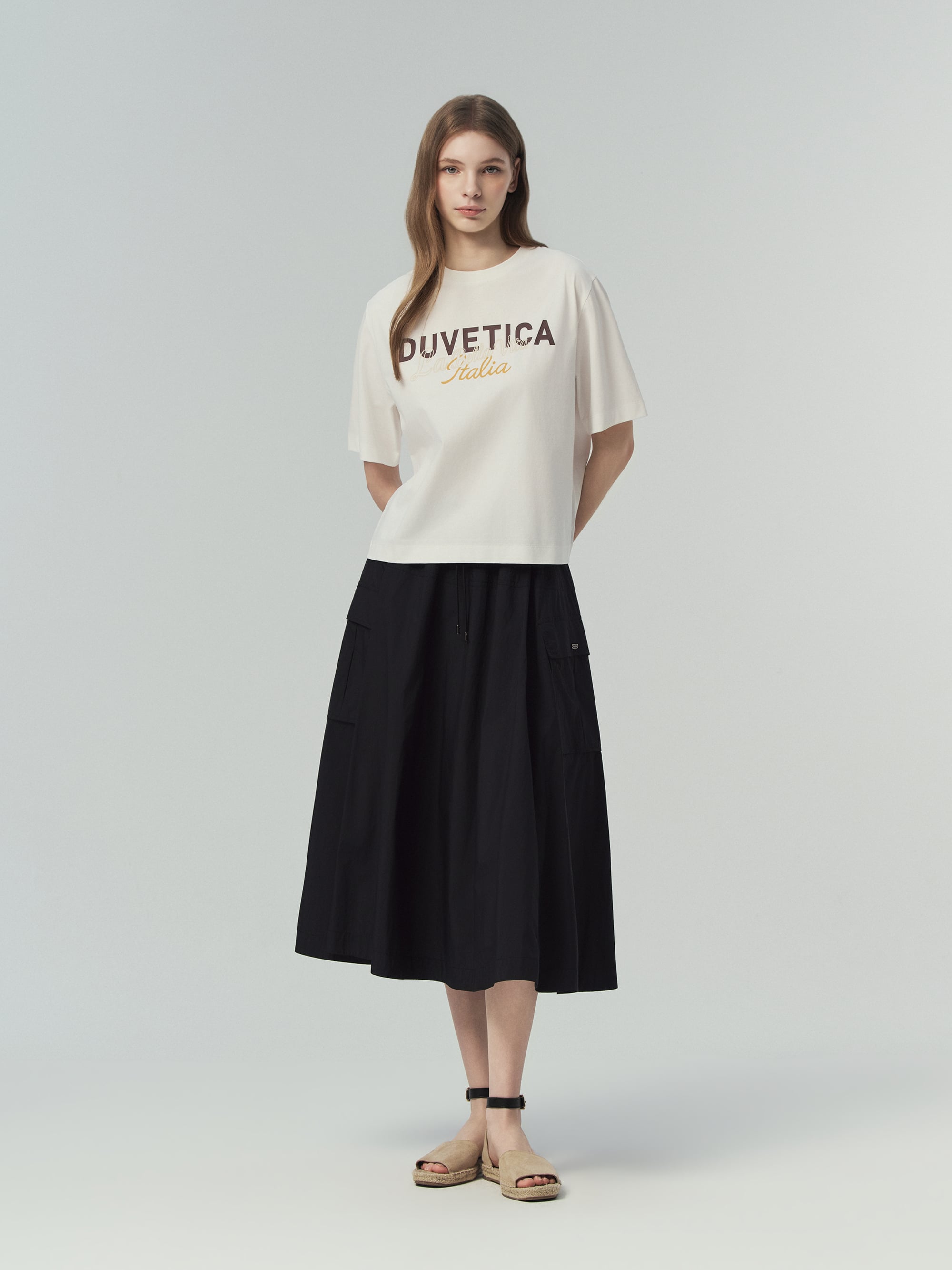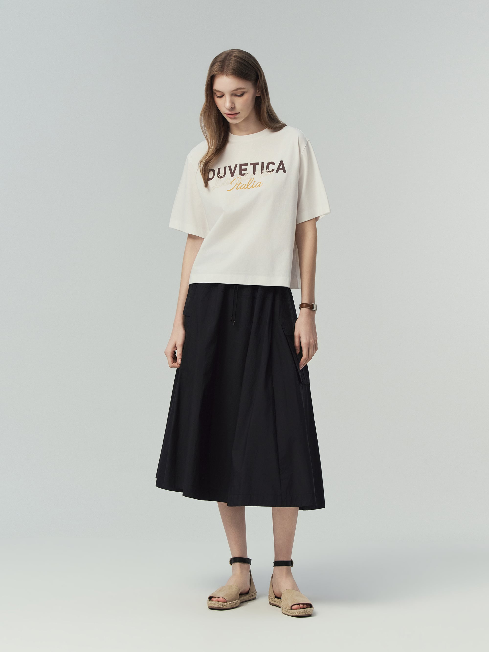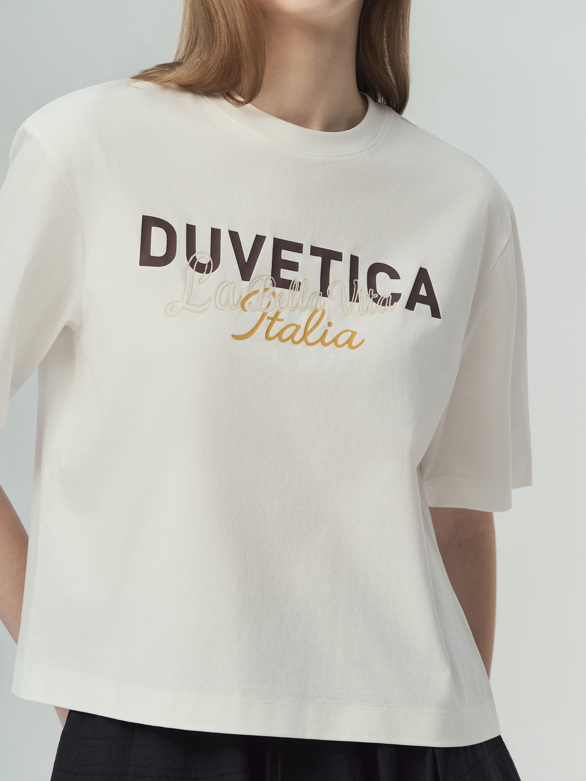 - 오버핏 크롭 기장과 드롭 숄더 라인으로 여유로운 핏감의 여성용 라운드넥 반팔티셔츠