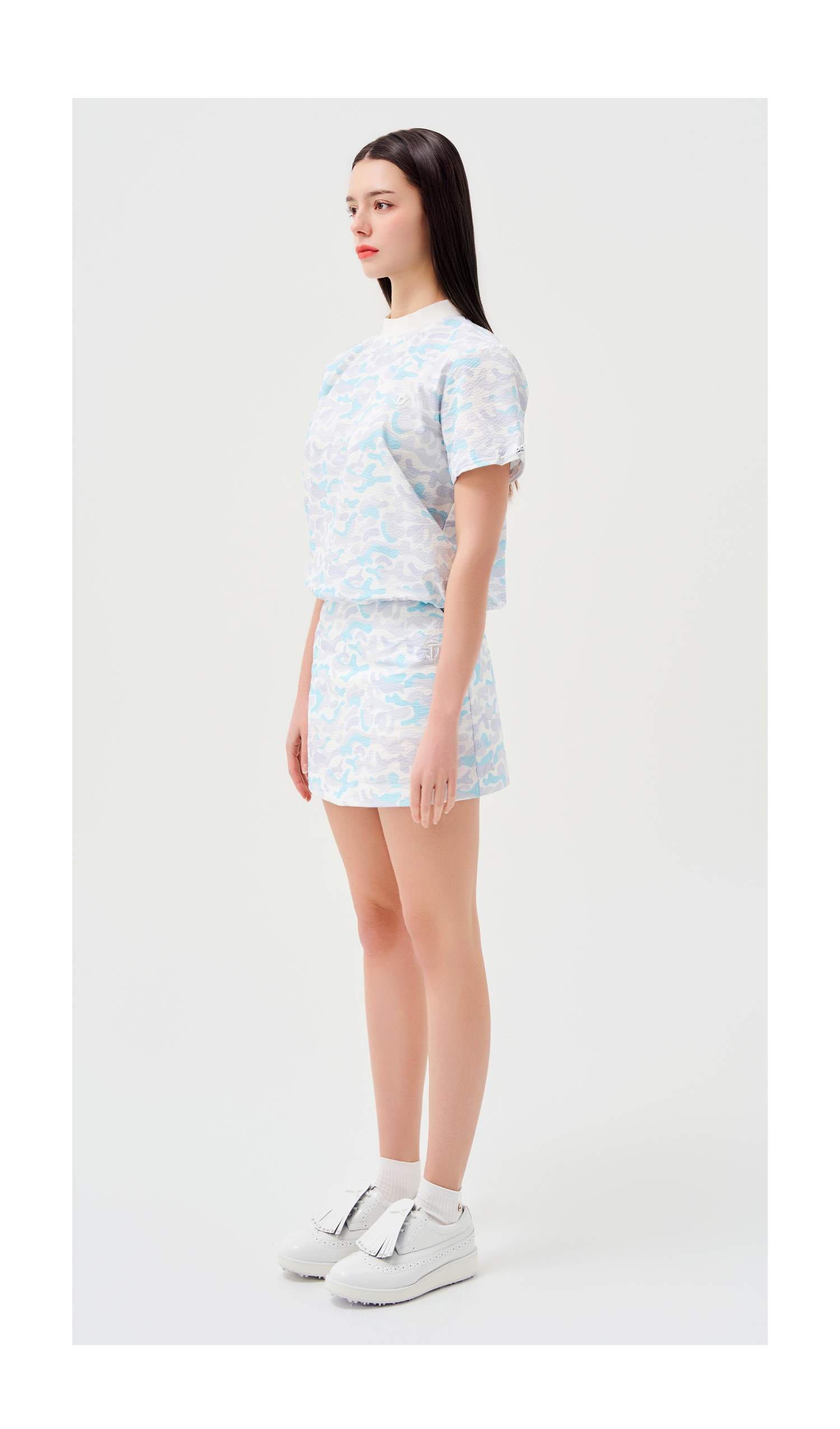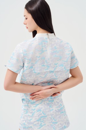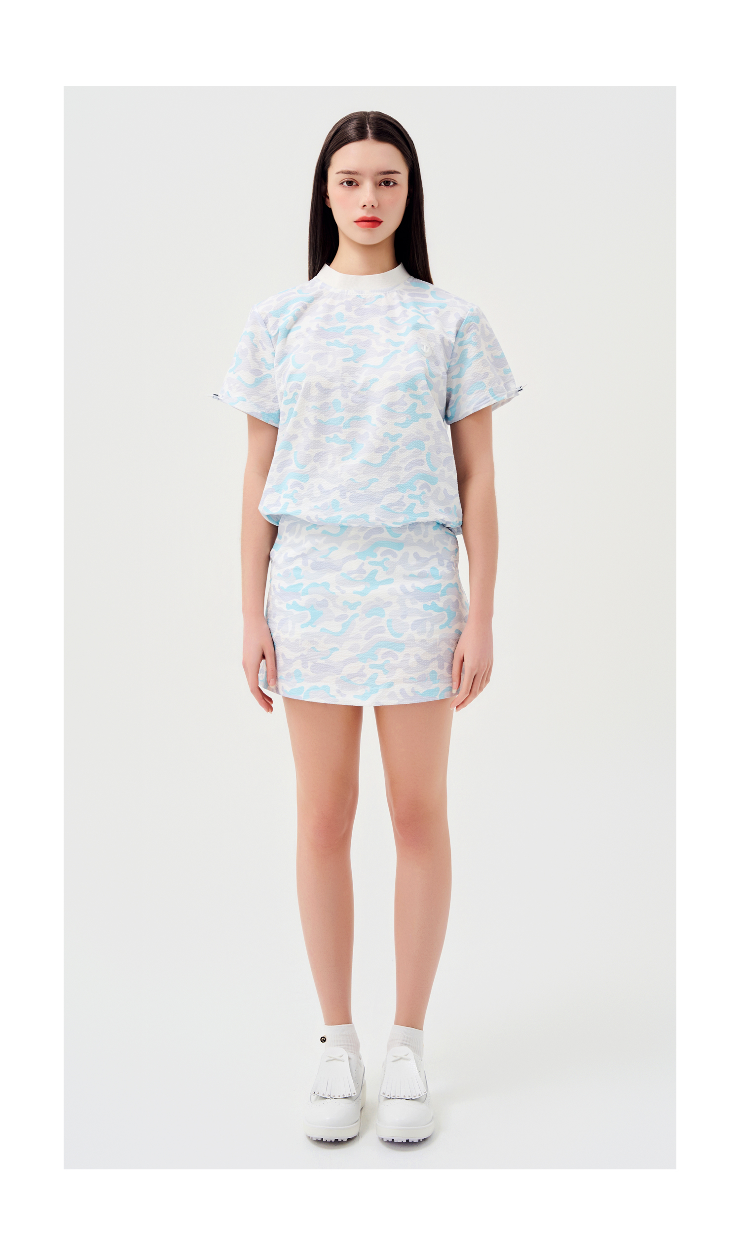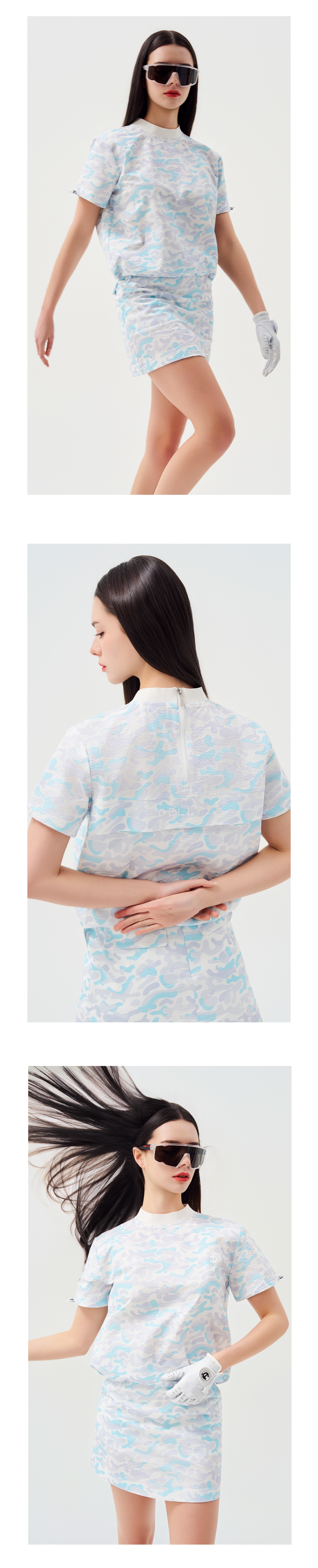 시어서커 백 포인트 라운드 하프 슬리브(냉감)