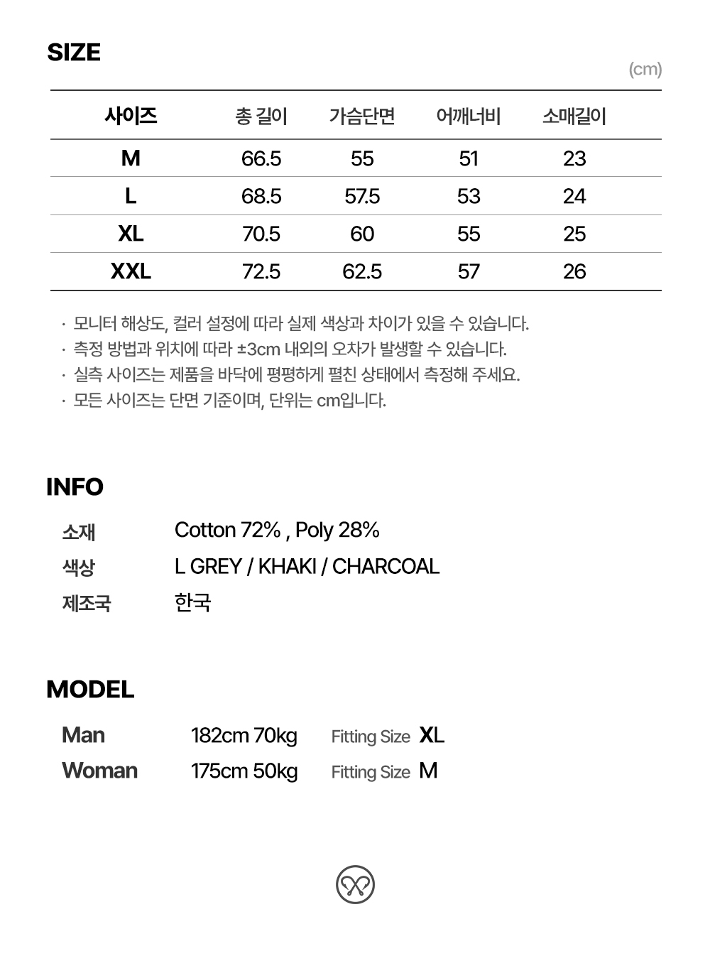 | 세탁방법 및 취급시 주의사항 | 1. 반드시 단독 세탁 또는 가볍게 손세탁 하십시오. (세탁기 사용 시 손상 주의) 2. 표백제 사용 및 장시간(10~30분 이상) 물에 담가두는 것을 금합니다. 3. 이염 및 변색 방지를 위해 색상별 분리 세탁하고, 젖은 상태로 방치하지 마십시오. 4. 비틀어 짜지 마시고, 옷 모양을 잡아 그늘에서 자연건조 하십시오. (기계 건조 금지) 5. 소재 특성상 마찰에 의한 보푸라기, 코팅 벗겨짐, 화기 접촉 등에 주의하십시오. 6. 오염 시 젖은 수건으로 닦거나 반드시 지정된 세탁 방식(케어라벨 참조)을 준수하십시오. ※ 상품에 따라 다를 수 있으니 자세한 사항은 제품 케어라벨 참조 |