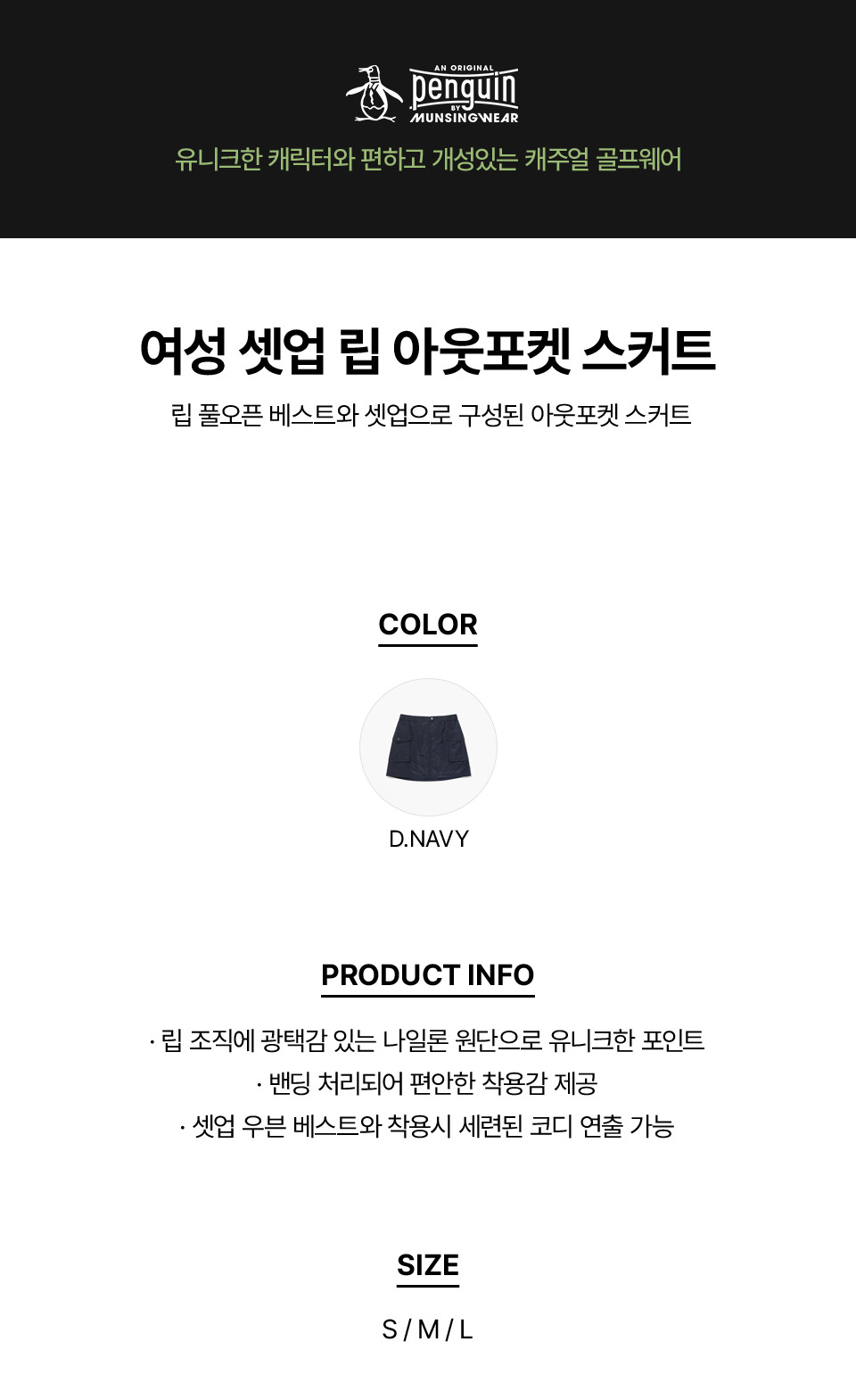 [먼싱웨어] 여성 셋업 립 아웃포켓 스커트 다크네이비 MR222PSK42