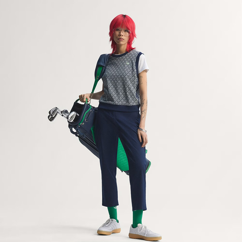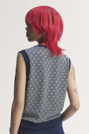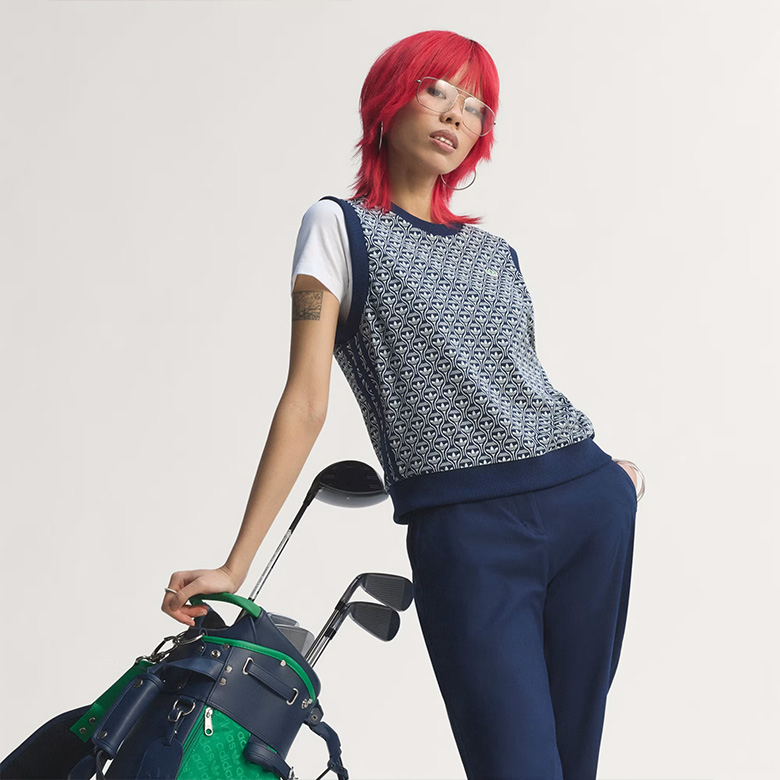 리브 칼라와 올오버 패턴으로 감각적인 스타일을 완성.