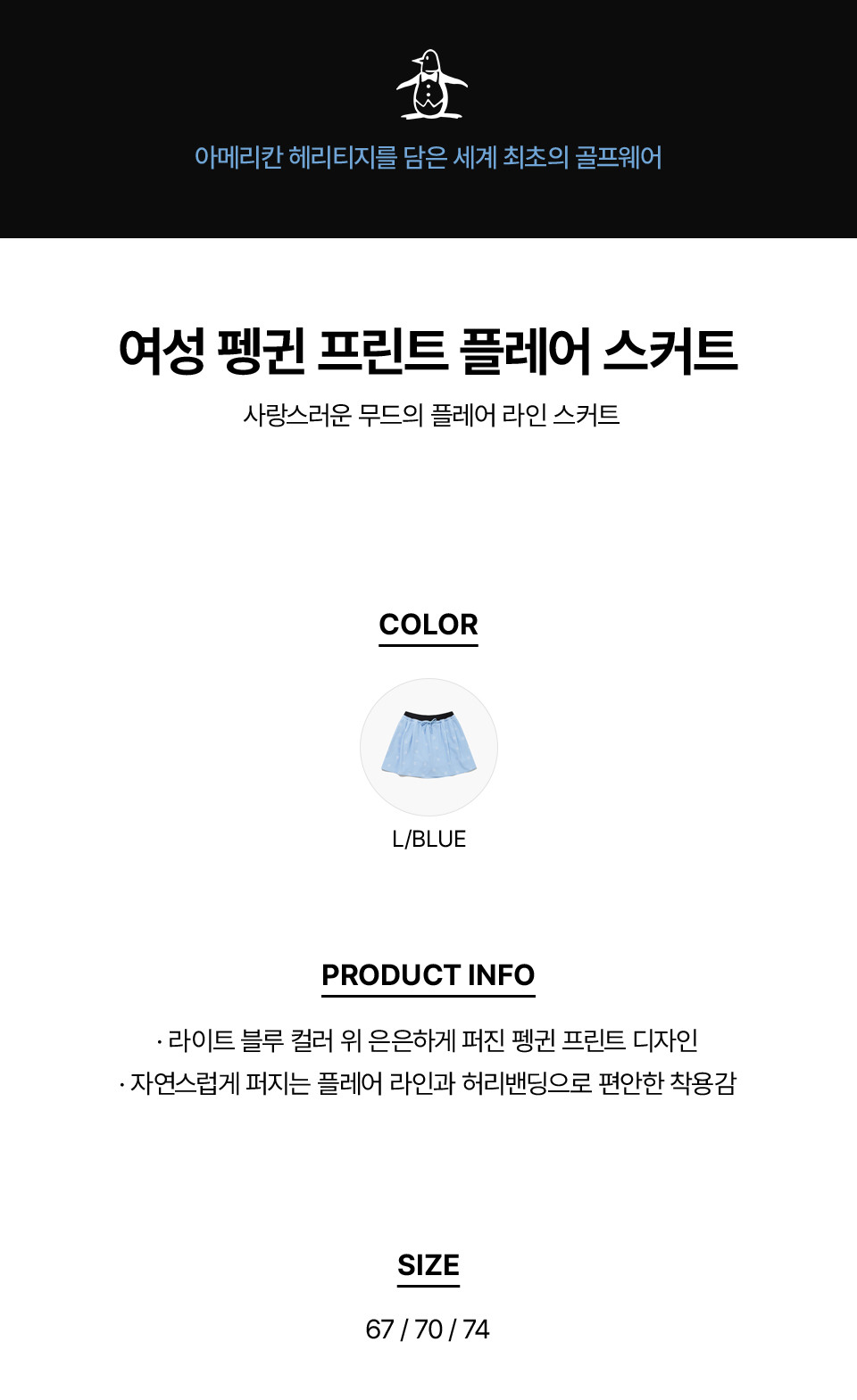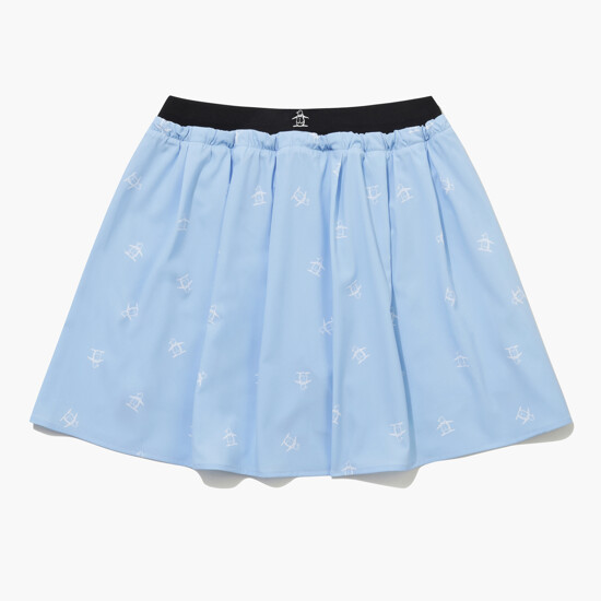 [먼싱웨어] 여성 펭귄 프린트 플레어 스커트 라이트블루 MR222LSK53