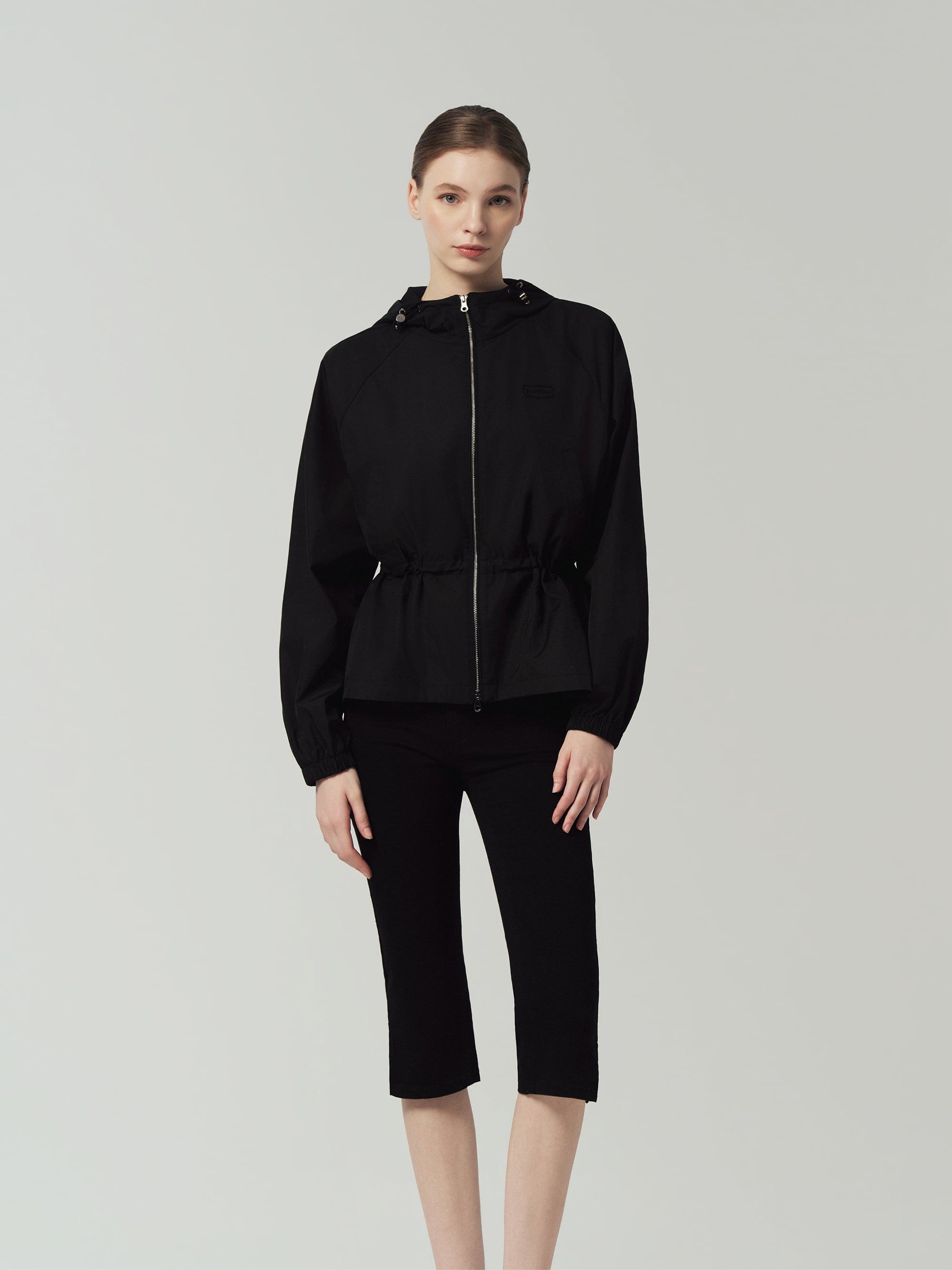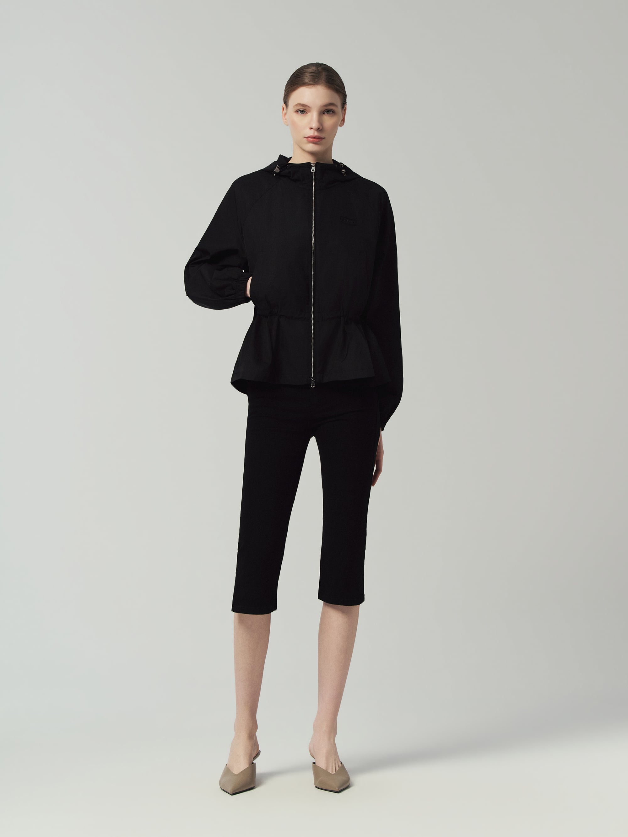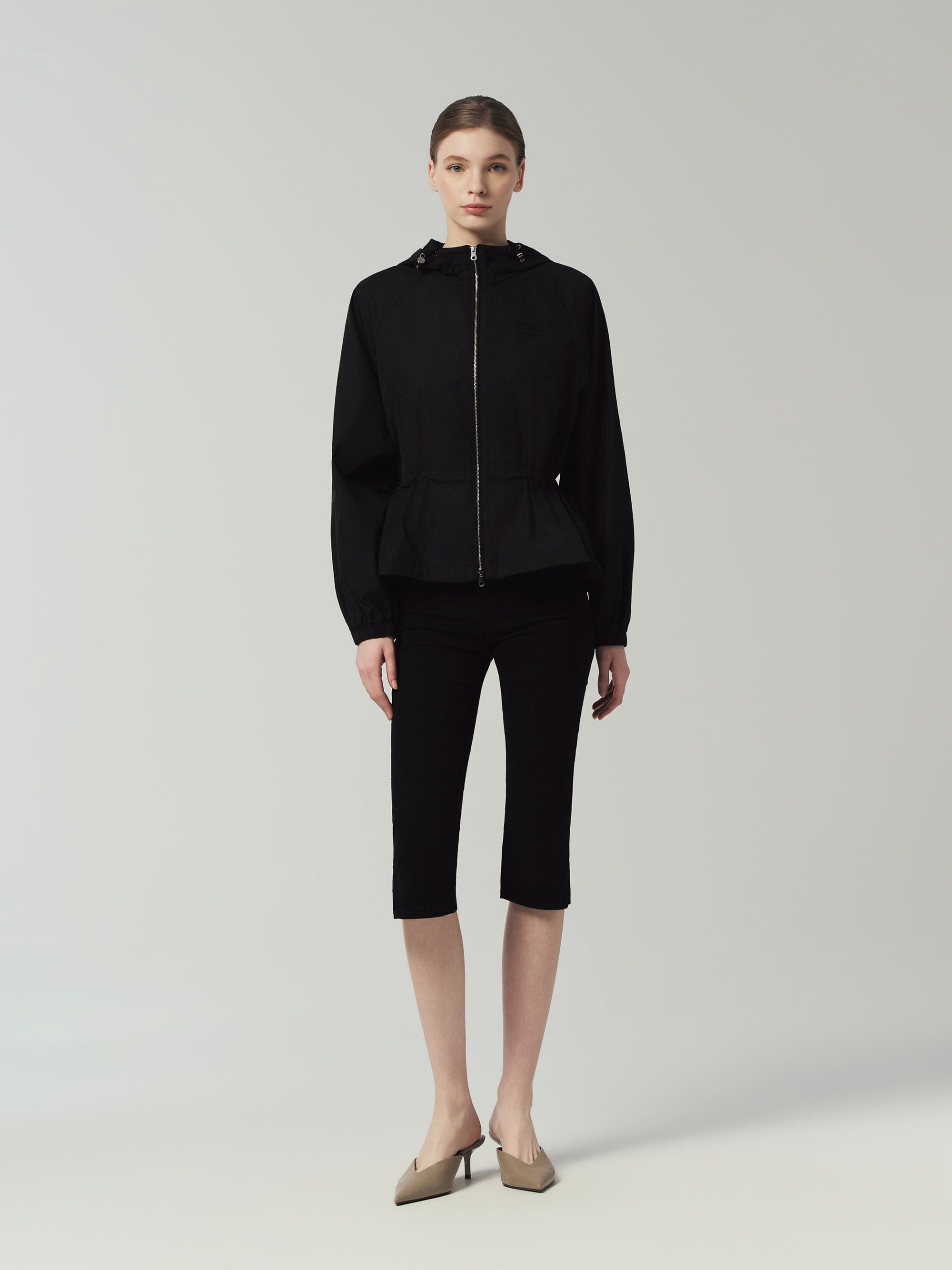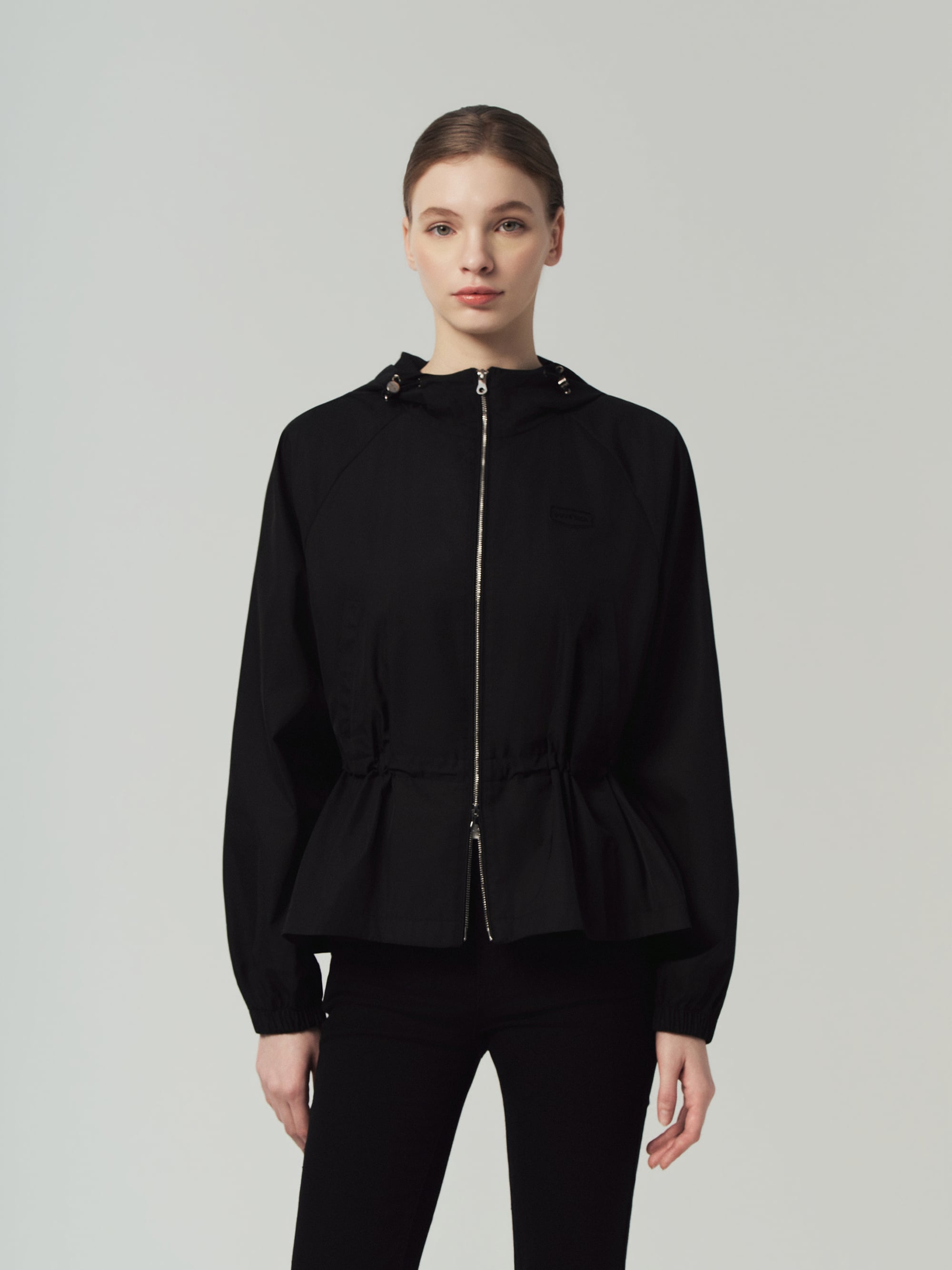 - 깔끔한 바디 라인에 소매와 밑단 볼륨을 더한 여성스러운 실루엣의 후드형 자켓
