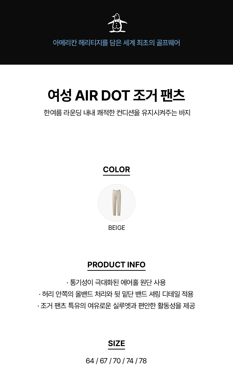 [먼싱웨어] 여성 AIR DOT 조거 팬츠 베이지 MR222LPT57