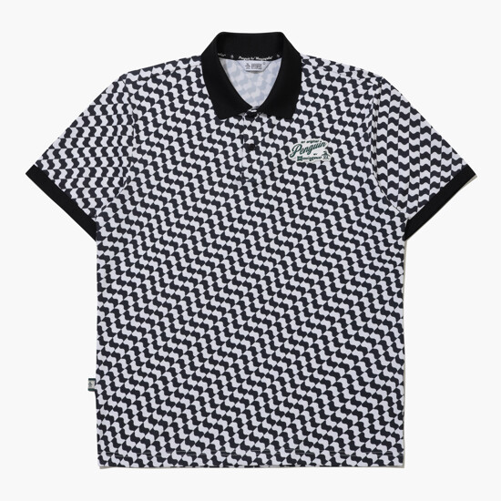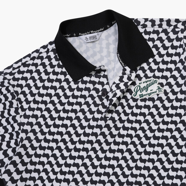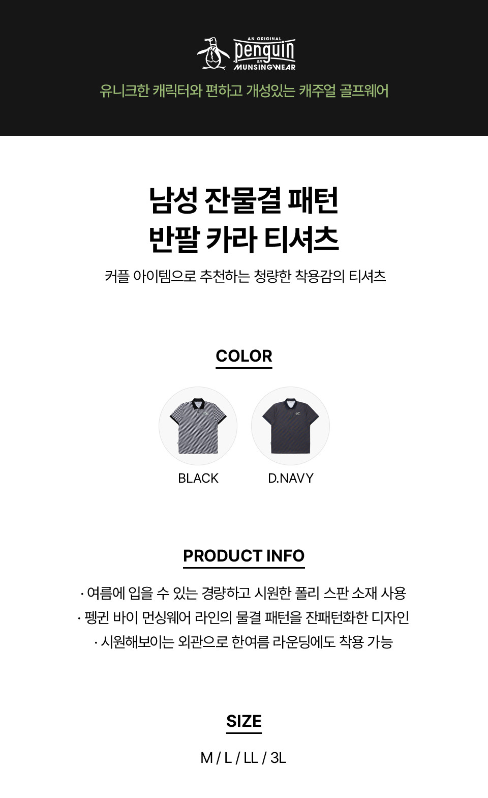 [먼싱웨어] 남성 잔물결 패턴 반팔 카라 티셔츠 블랙 MR221PTS43