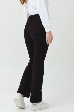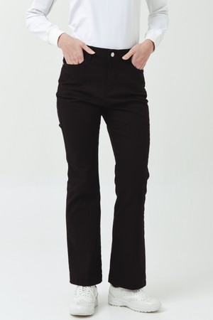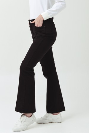 면 스판 소재의 허리 밴드 10부 부츠컷 팬츠로, 이밴드 처리된
