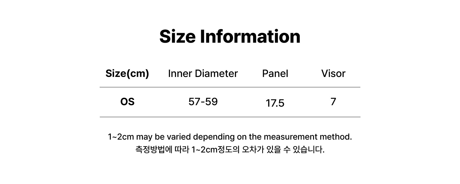 | 소재 | Crown : Polyester=100%, Visor : Cptton=100% |