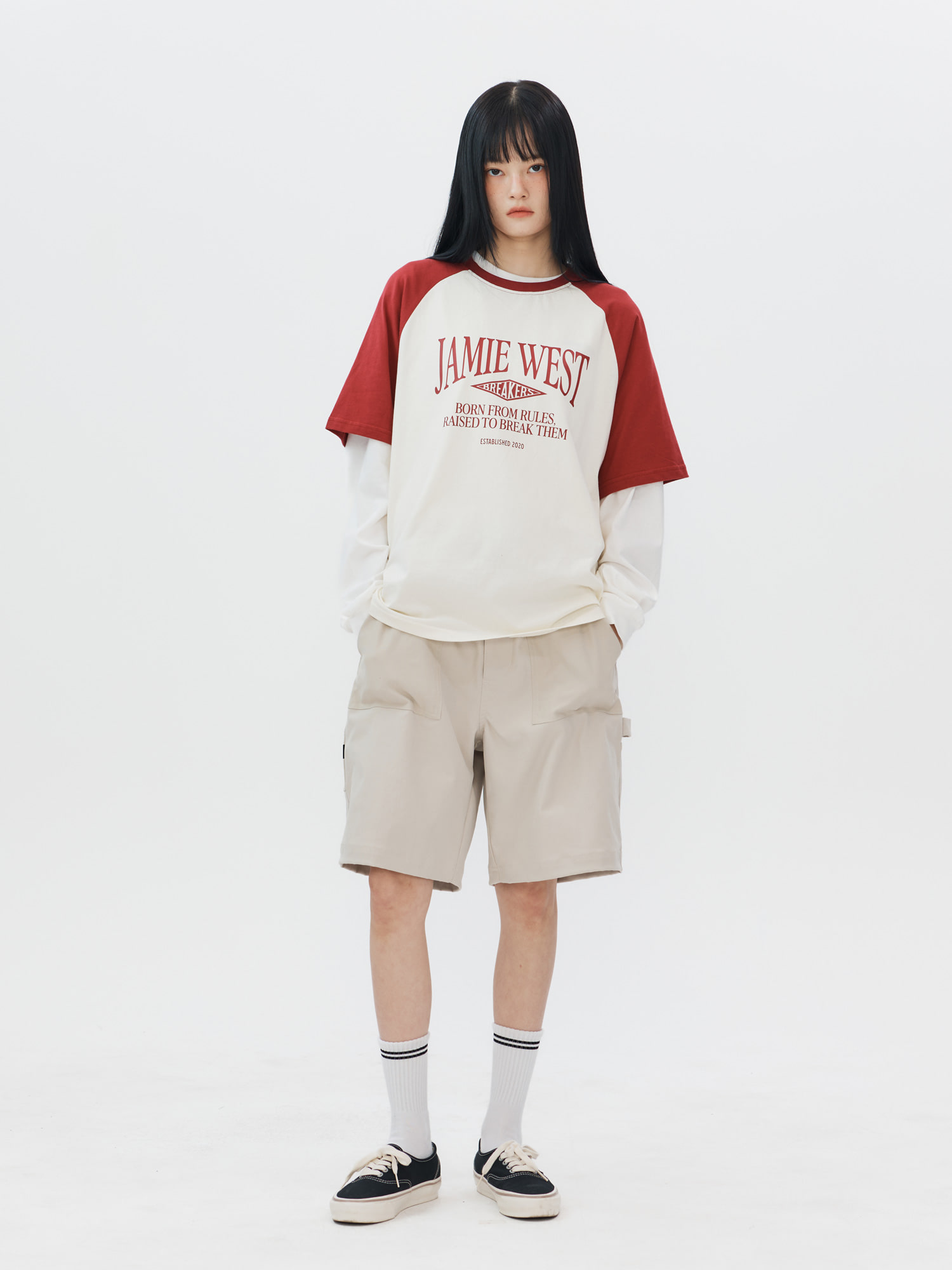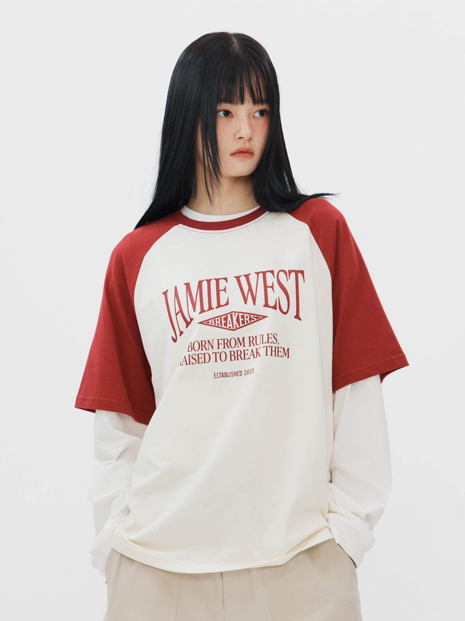 레트로 레터링 레귤러 래글런 티셔츠