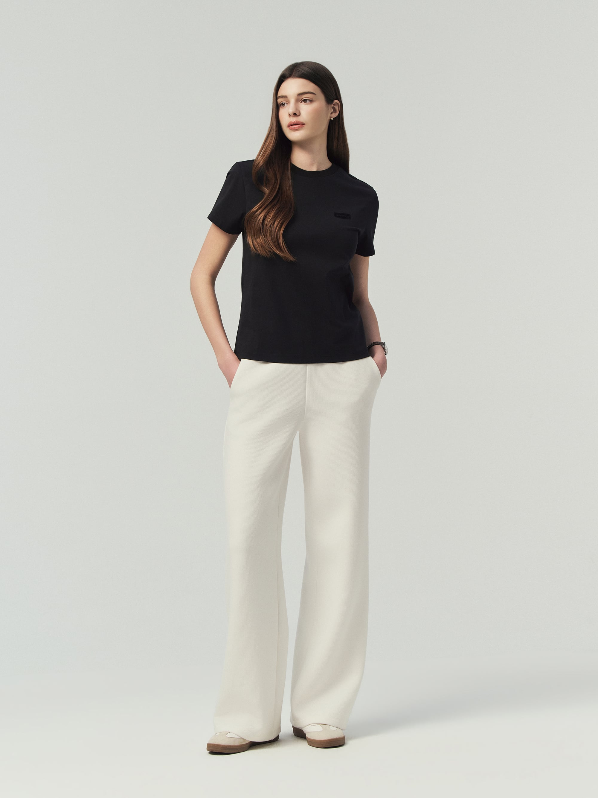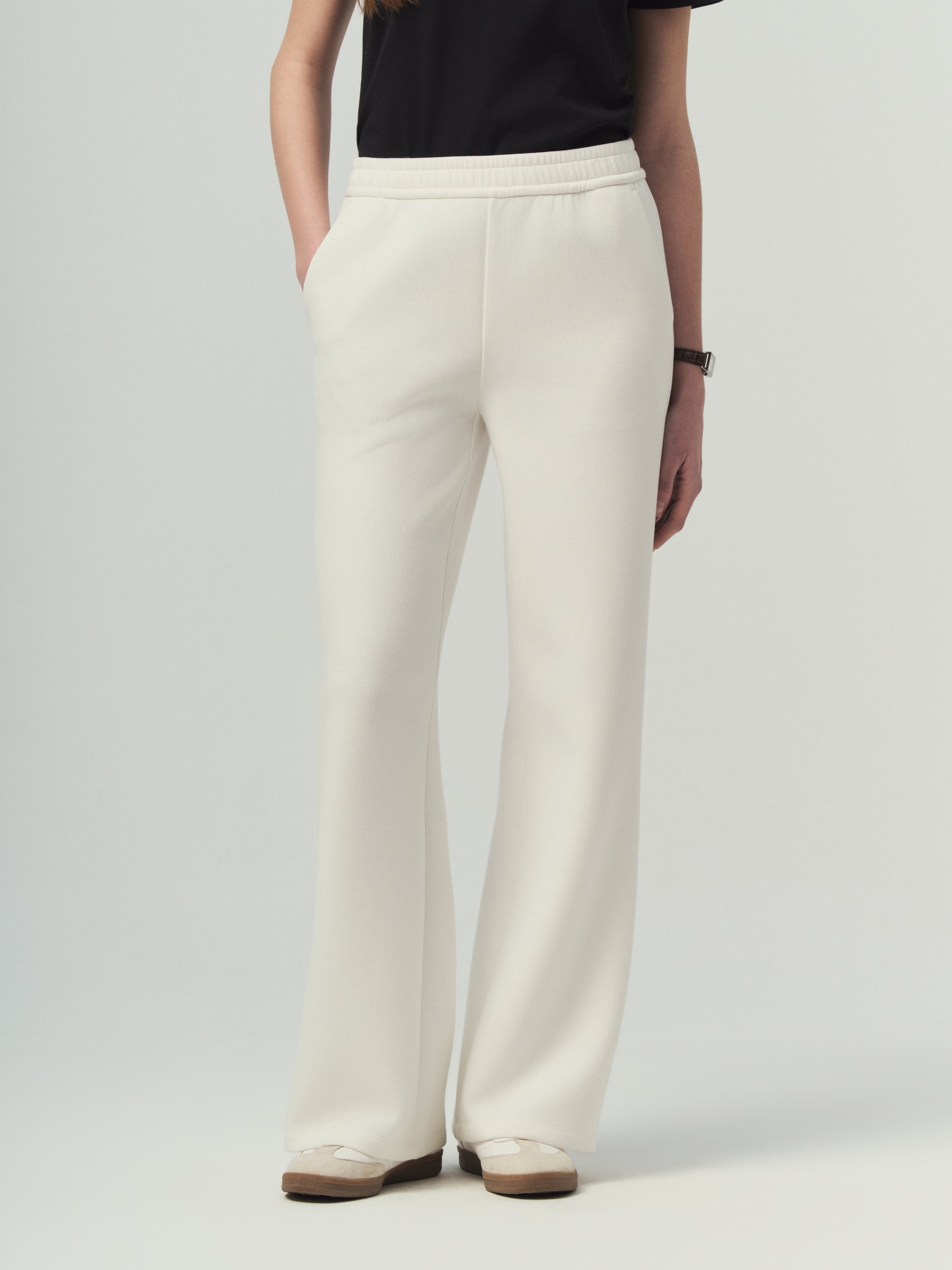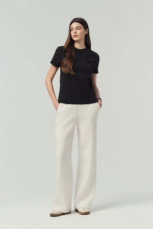 - 허리 전체 밴딩과 여유 있는 와이드 실루엣으로 편안한 착용감과 스타일리시한 핏 연출
