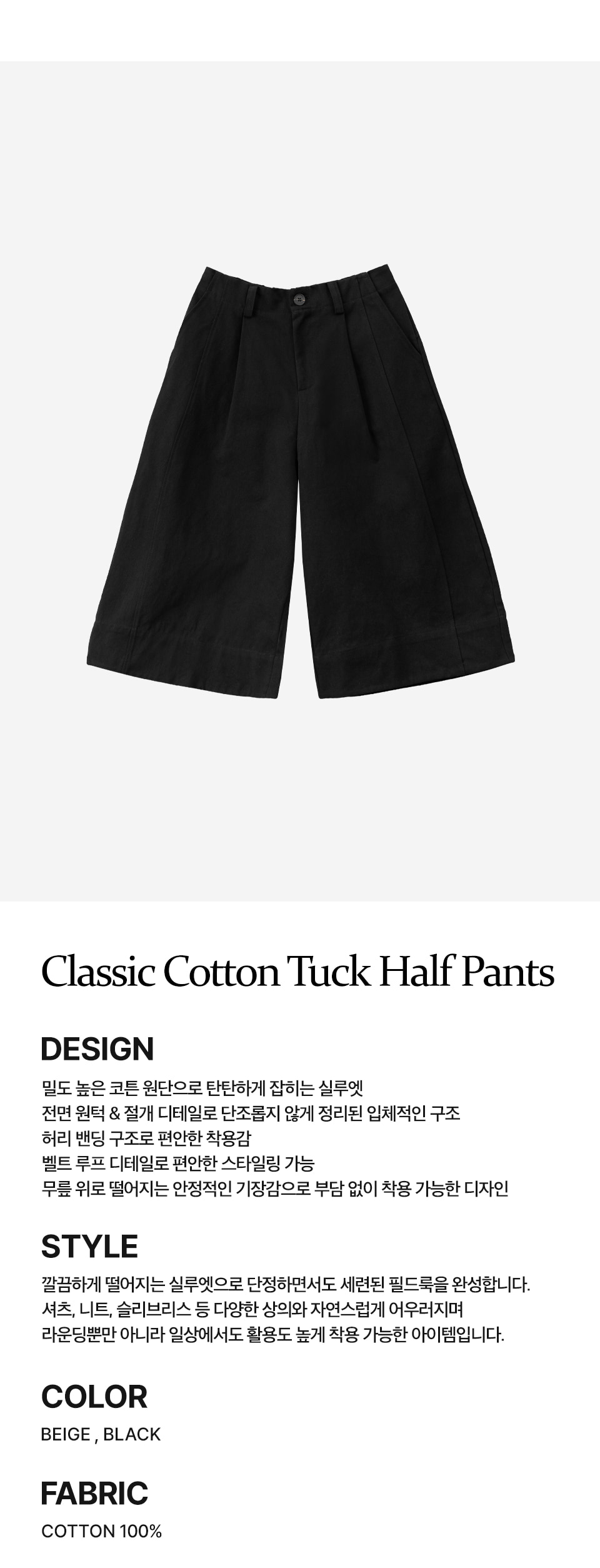 클래식 코튼 원턱 하프 팬츠