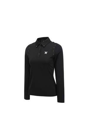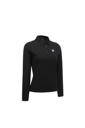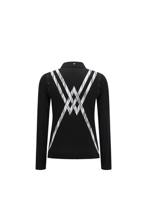 [ANEW GOLF] WOMEN SIGNATURE LOGO HYBRID LONG T-SHIRT_BK