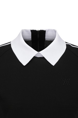 [ANEW GOLF] WOMEN MESH PATCH SHORT SLEEVE SWEATER_BK