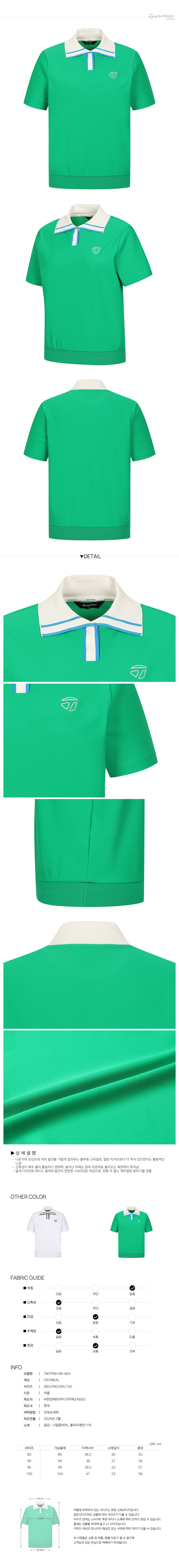 [테일러메이드] 26SS 여성 니트 카라 블루종 반팔 티셔츠 TWTP66148-804