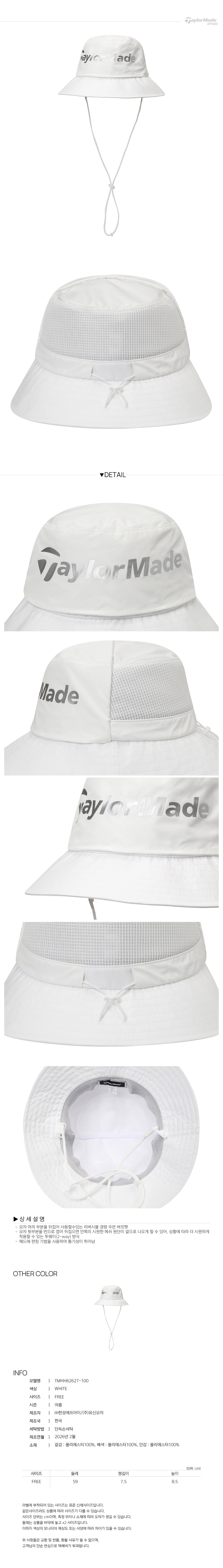 [테일러메이드] 26SS 남성 펀칭 리버시블 버킷햇 TMHH62627-100