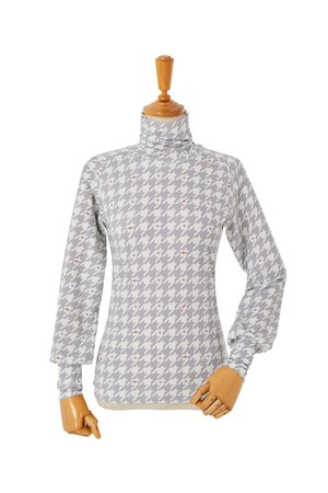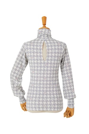 3도 패치 프린트와 하운드투스 패턴의 풀오버 티셔츠입니다