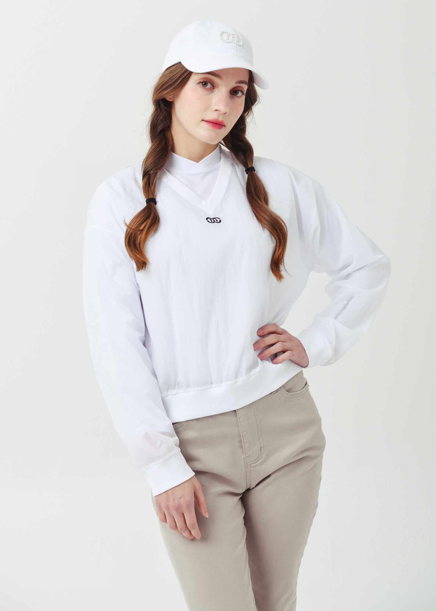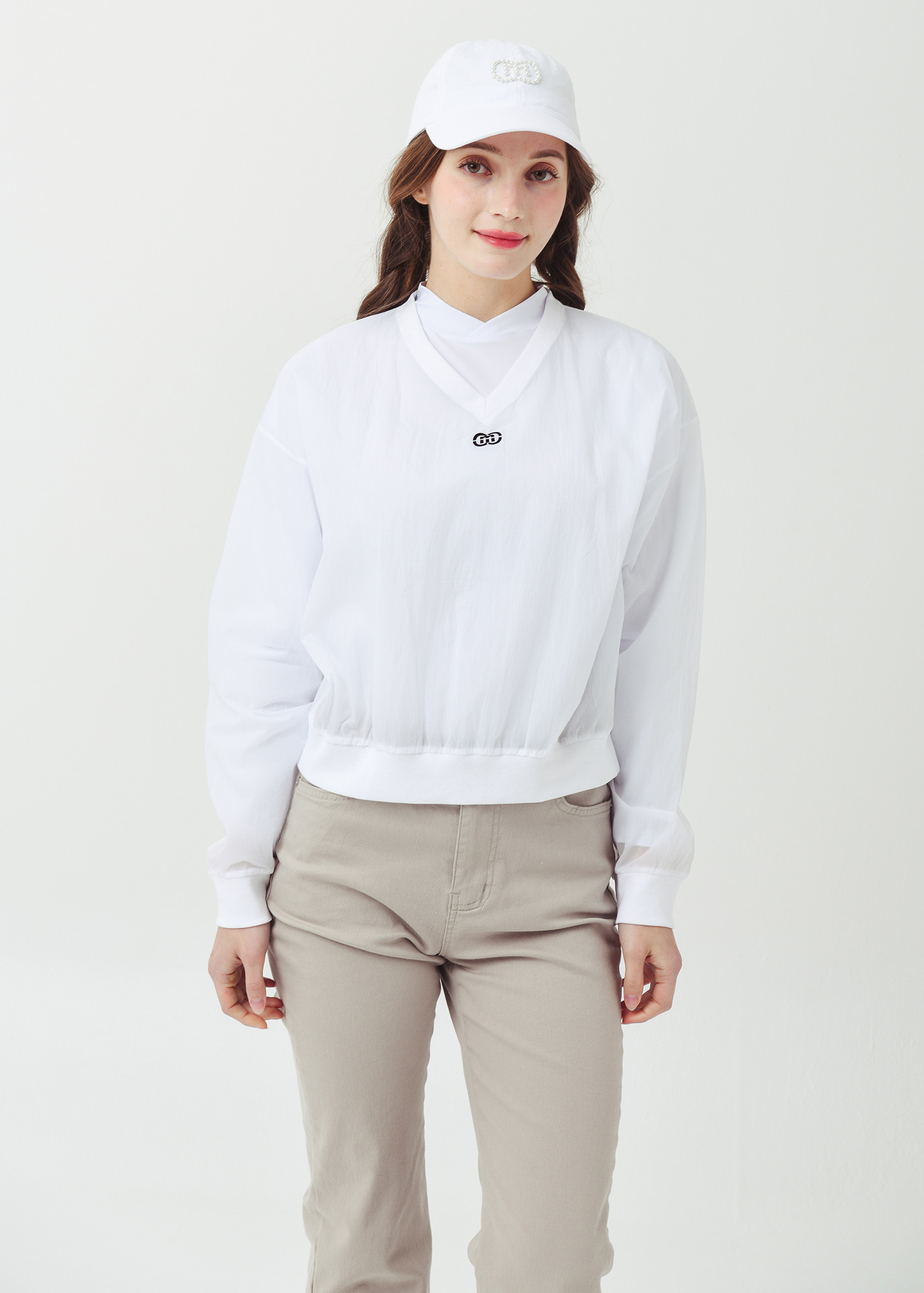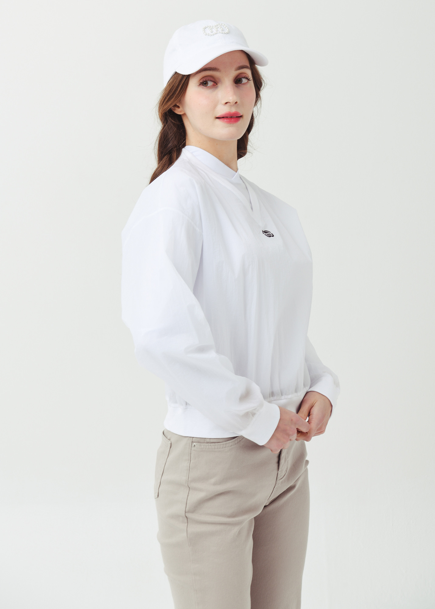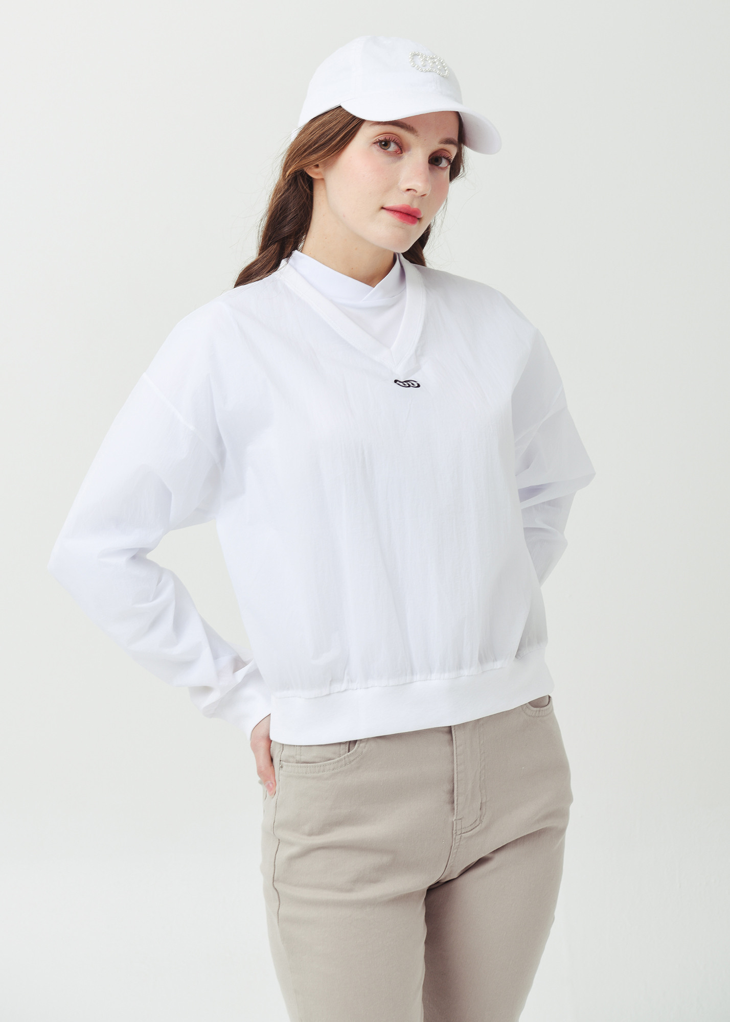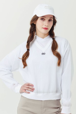 26SS 경량 브이넥 크롭 화이트 바람막이