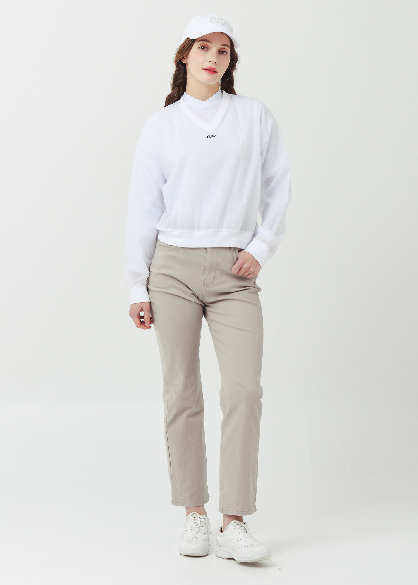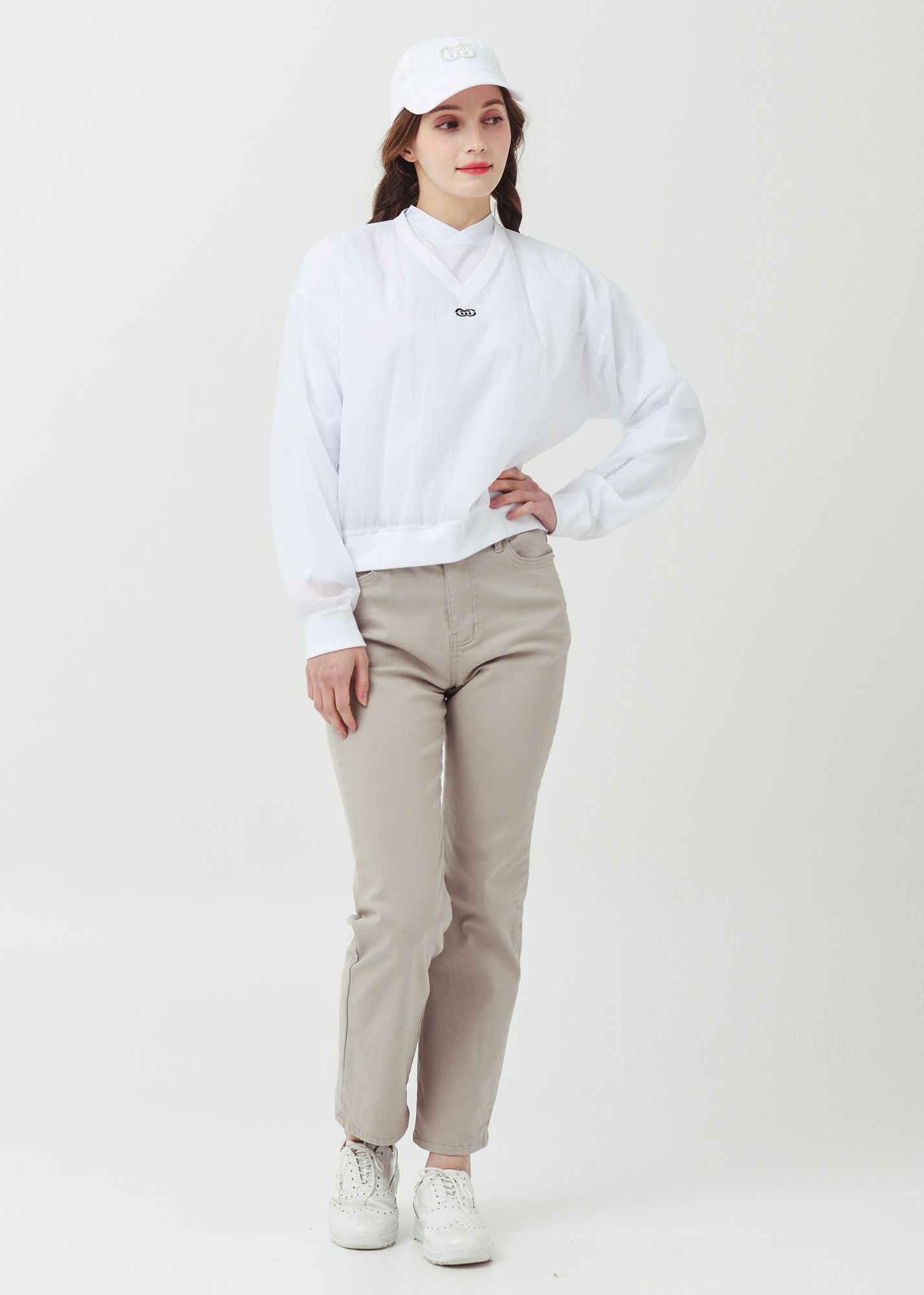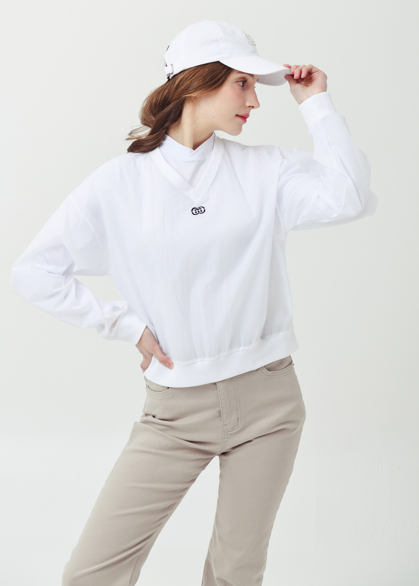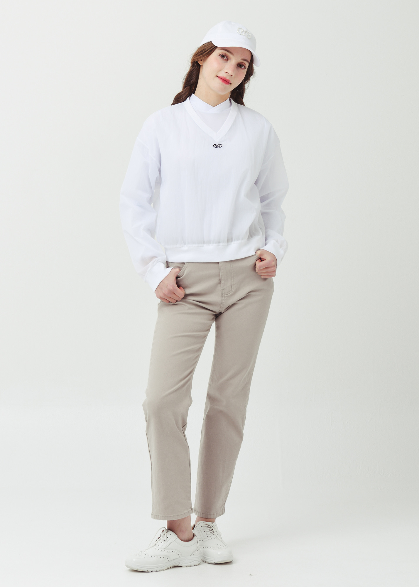 26SS 경량 브이넥 크롭 화이트 바람막이