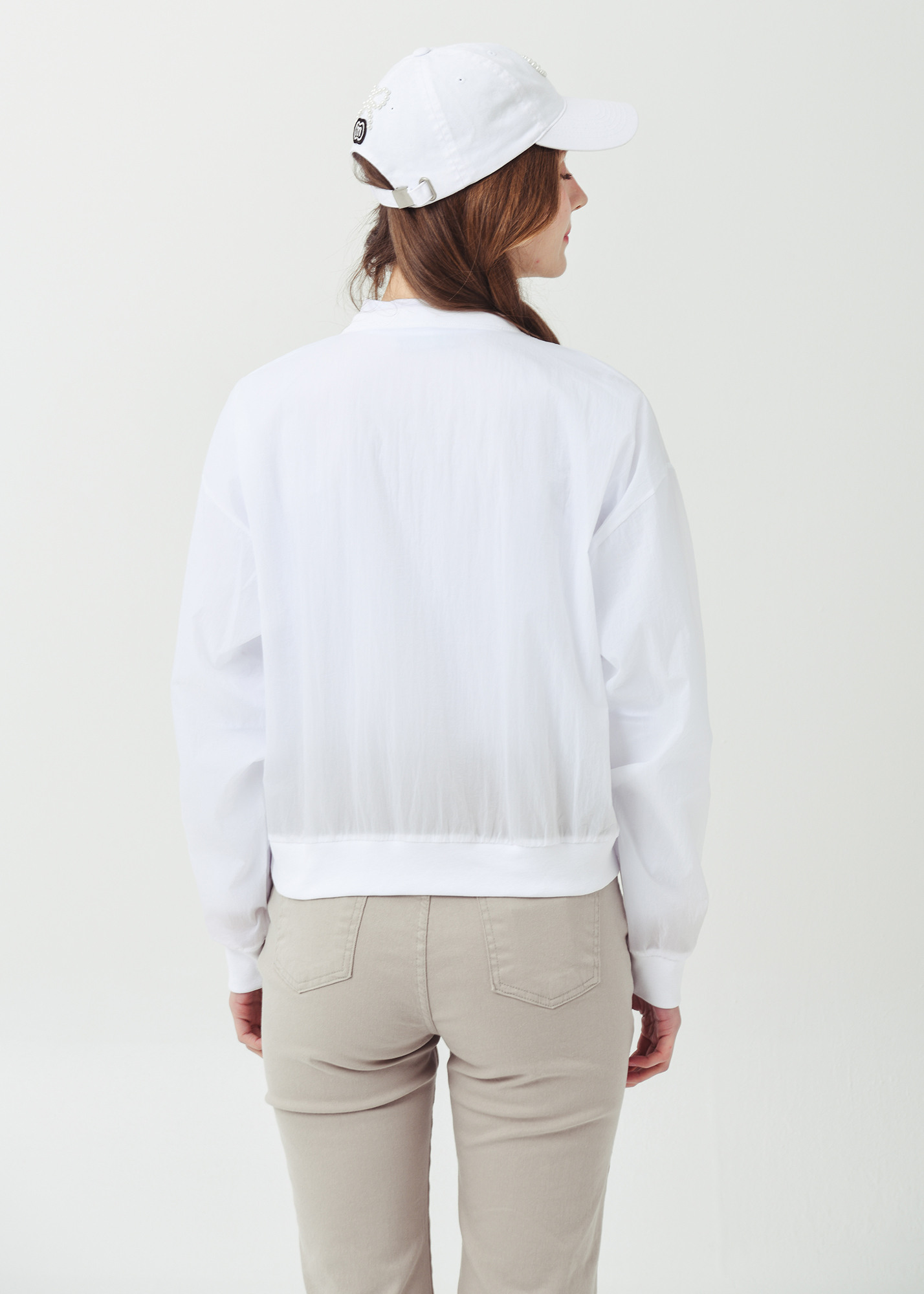경량 브이넥 크롭 화이트 바람막이