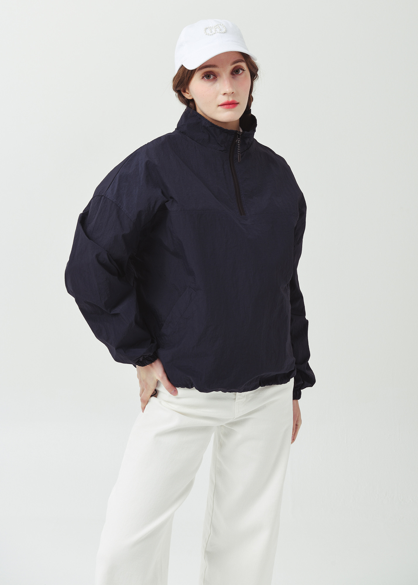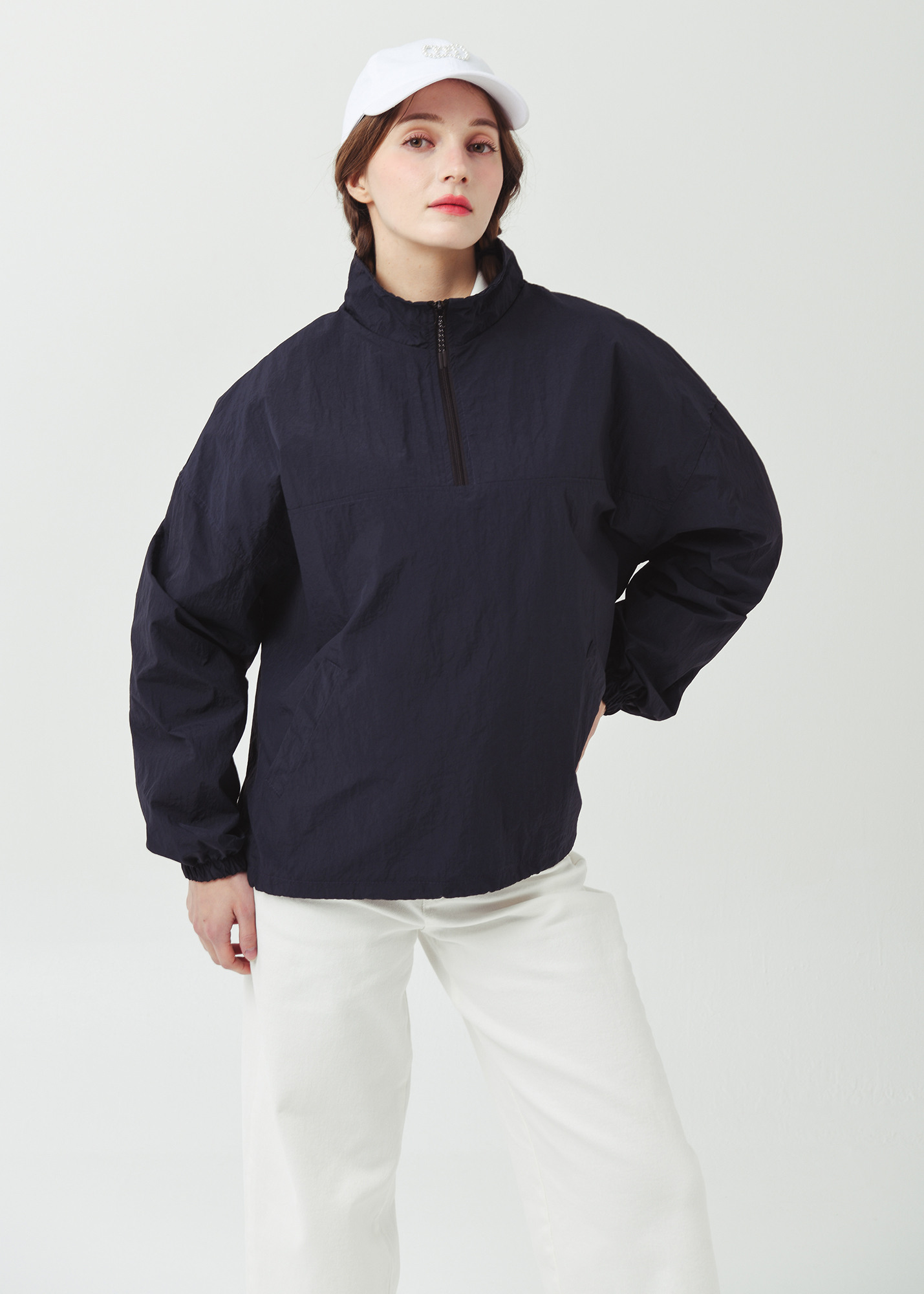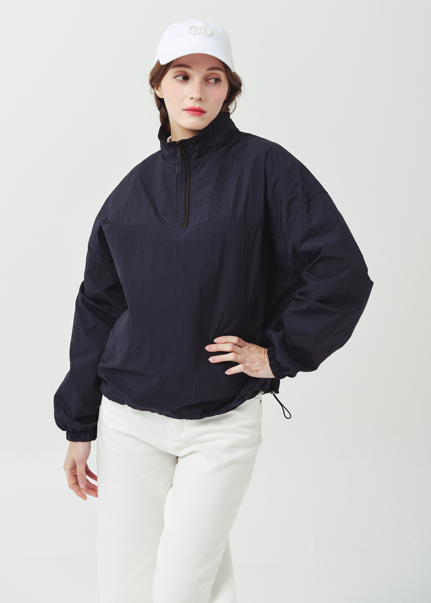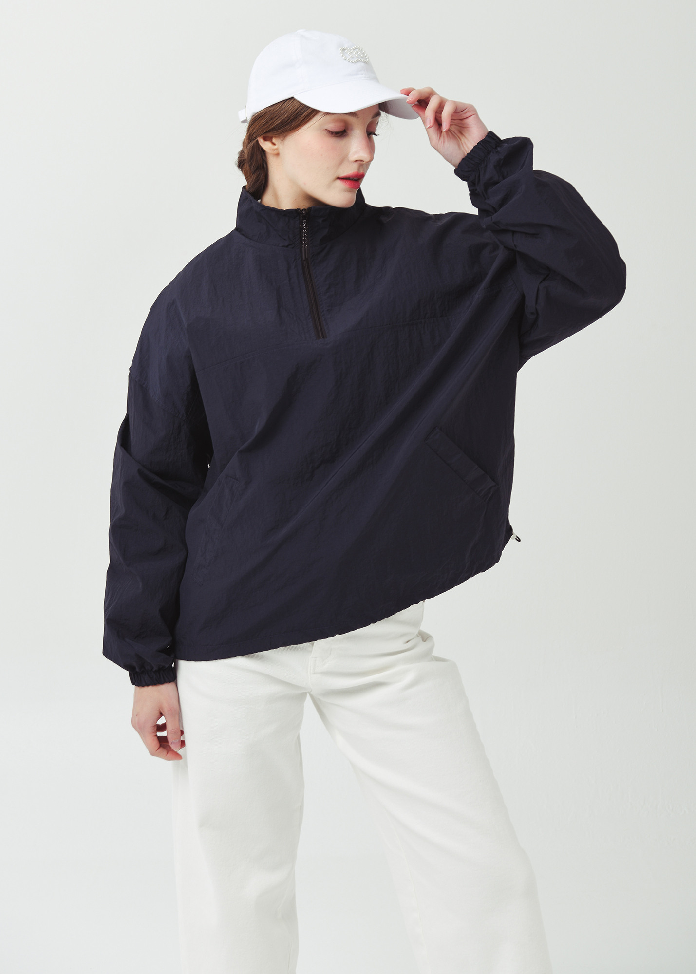 26SS 하프집 경량 플 오버형 오버핏 네이비 바람막이