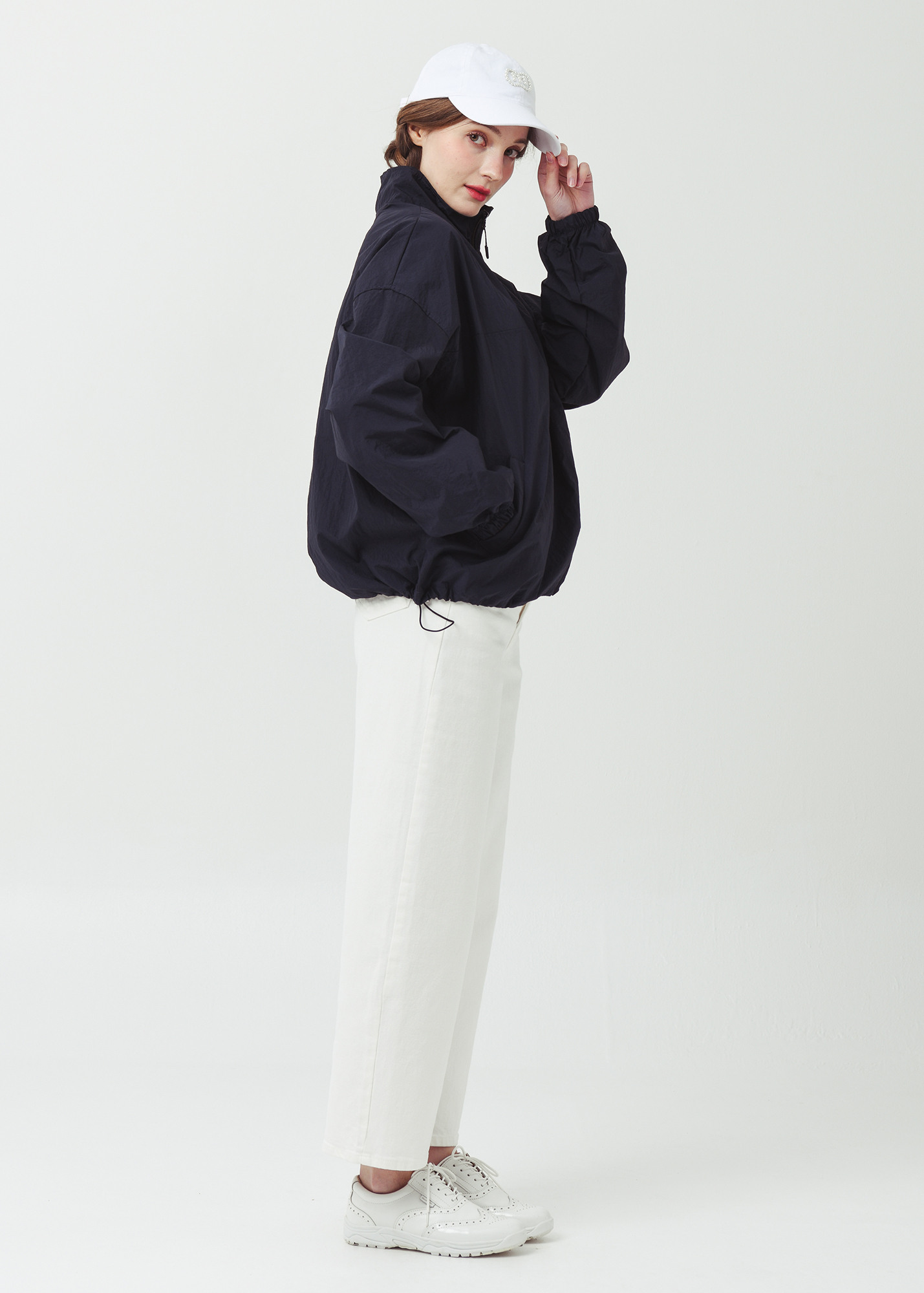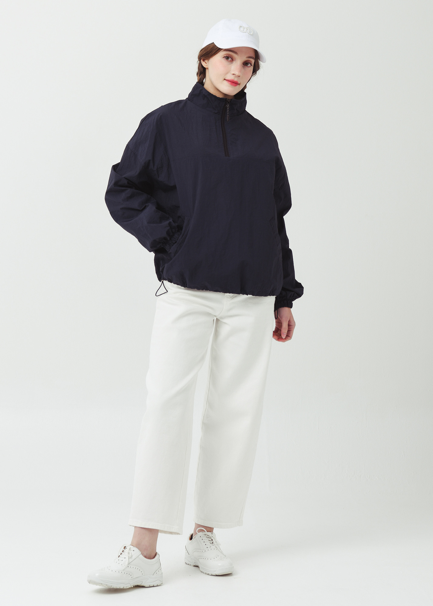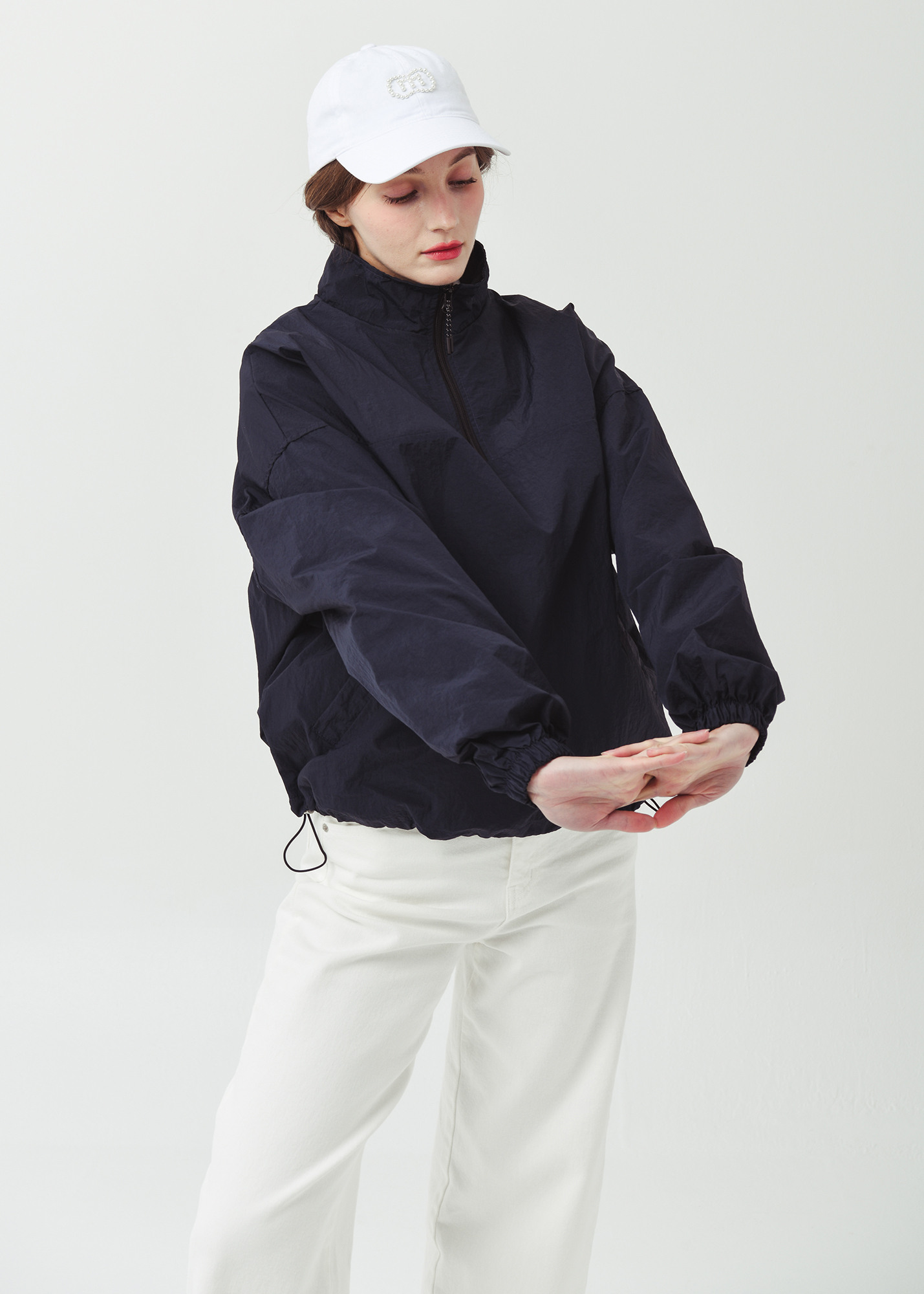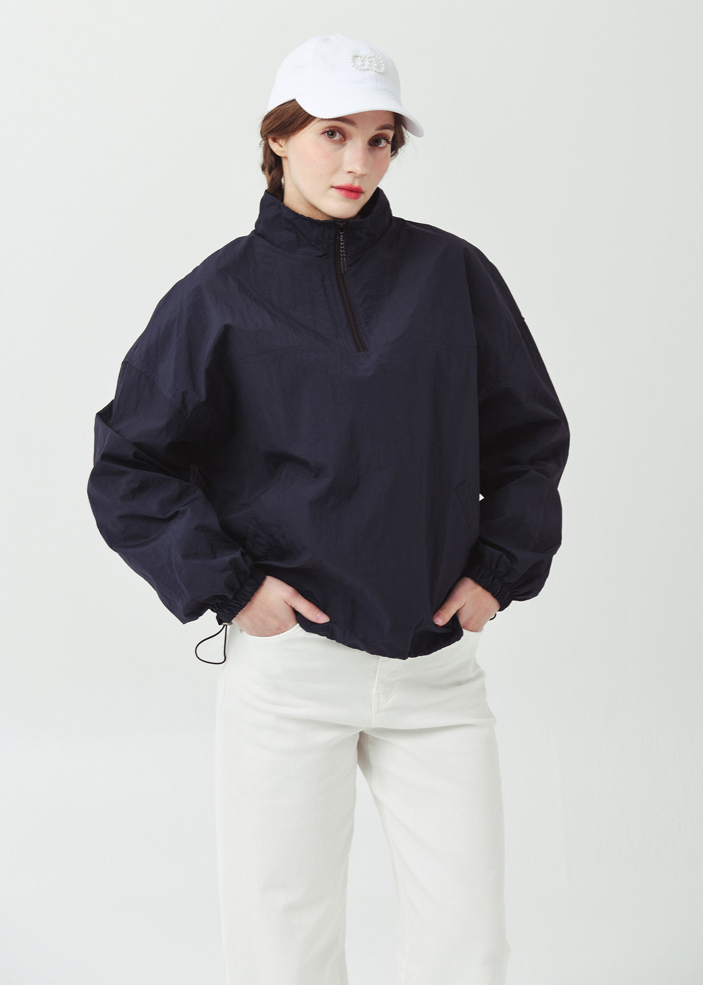 26SS 하프집 경량 플 오버형 오버핏 네이비 바람막이