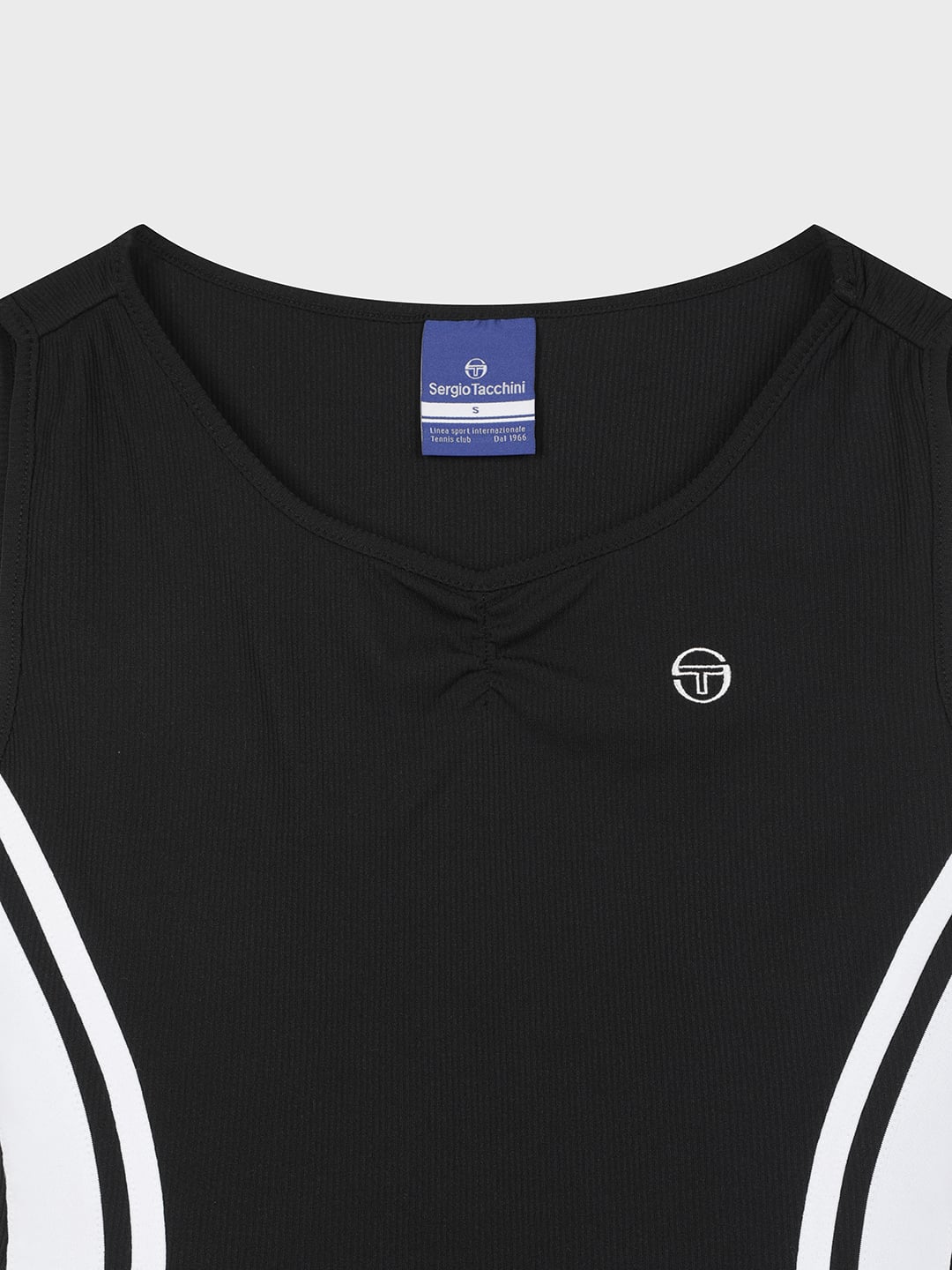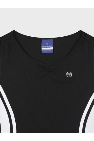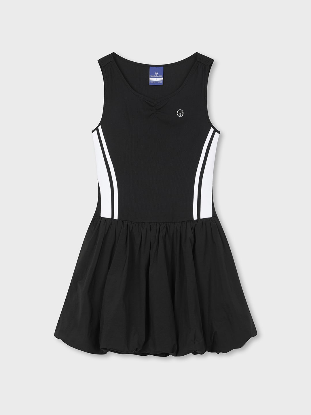 - - 브랜드 헤리티지인 다마린도(Damarindo) 라인 배색으로 액티브한 무드를 강조한 슬림 벌룬 드레스