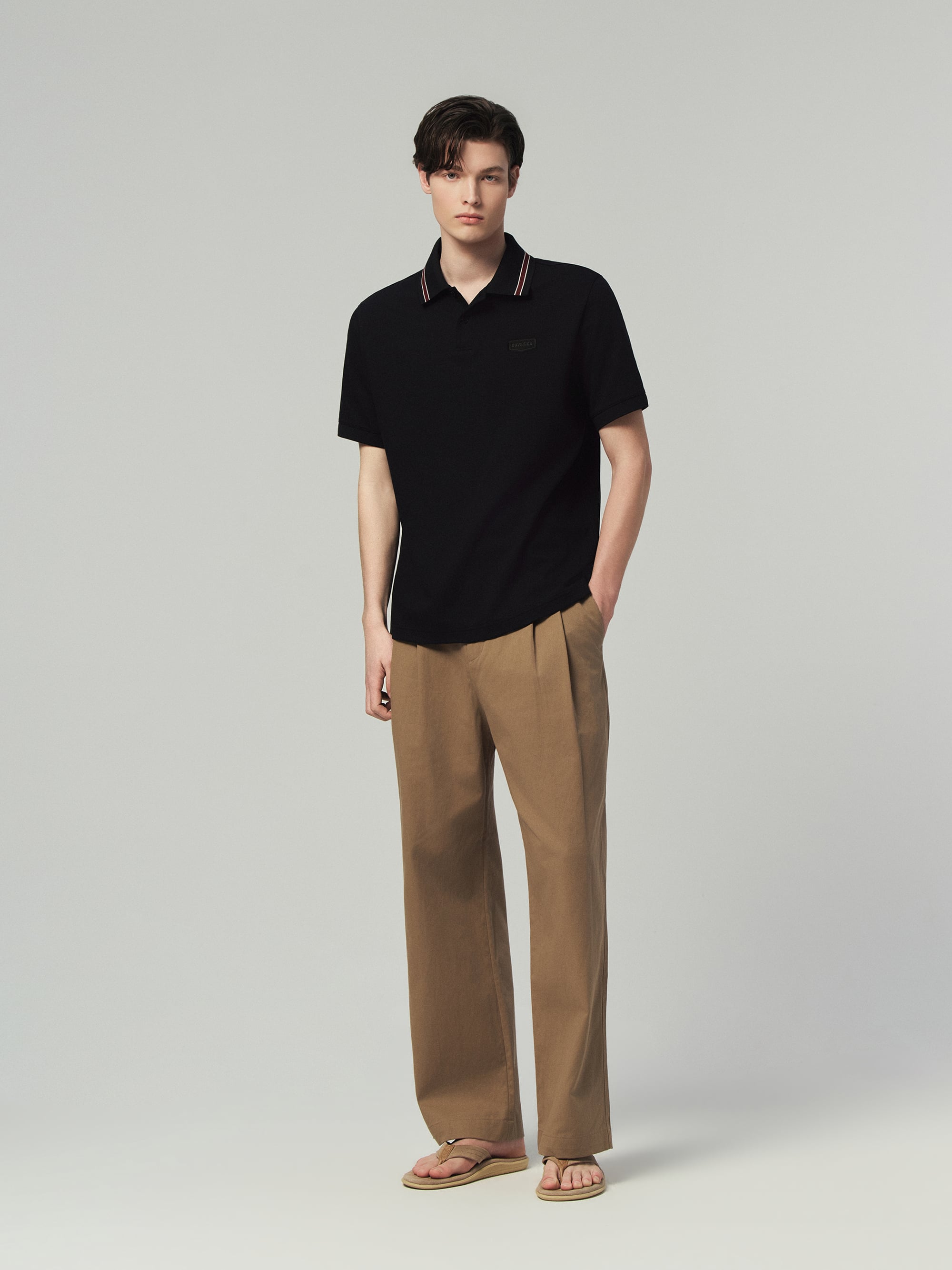 - 와플 조직감이 돋보이는 카라 티셔츠
