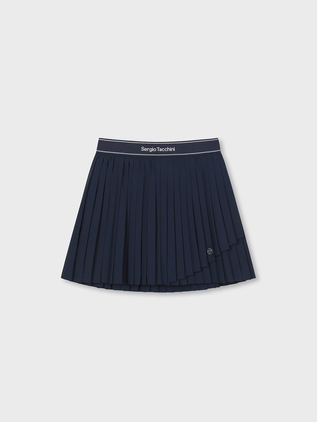 - - 랩 형태의 언발란스 실루엣으로 재해석한 플리츠 스커트