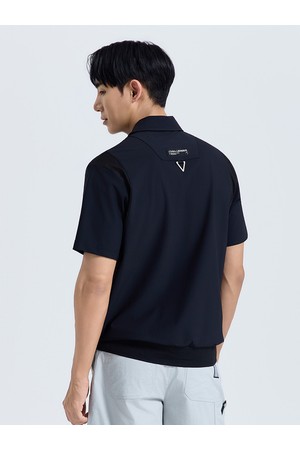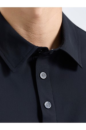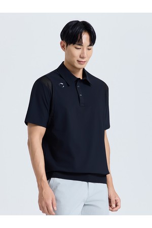 남성 메쉬 믹스 스트레치 카라 반팔 티셔츠 블랙