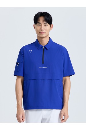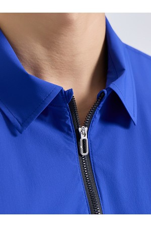 남성 제로라이트 지퍼 카라 반팔 우븐탑 로얄블루