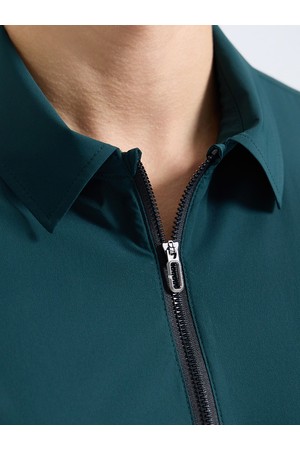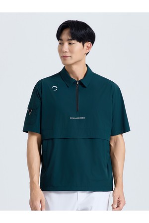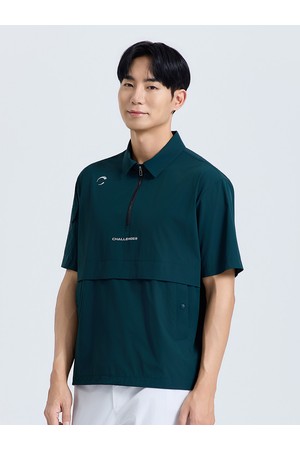남성 제로라이트 지퍼 카라 반팔 우븐탑 다크그린