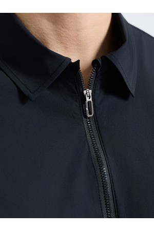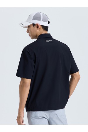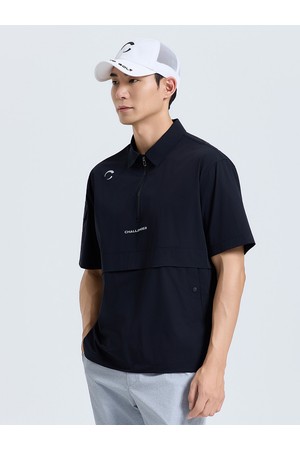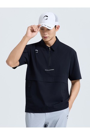남성 제로라이트 지퍼 카라 반팔 우븐탑 블랙