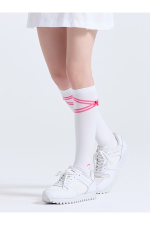 o 리본 배색 띠 디테일 상단 리본 배색 포인트가 종아리를 감싸주어 슬림한 핏 연출