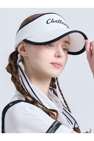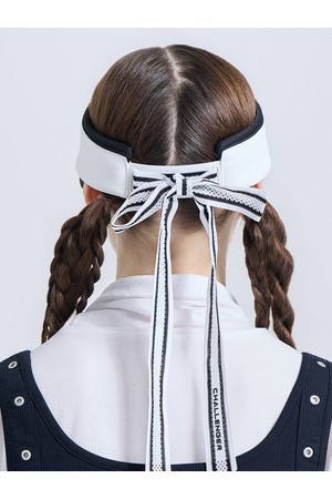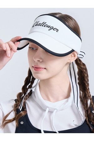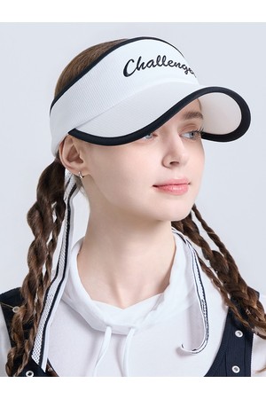 여성 레터링 로고 자수 리본 탈부착 밴딩 썬캡 화이트