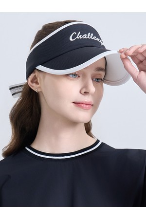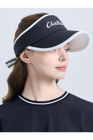 여성 레터링 로고 자수 리본 탈부착 밴딩 썬캡 블랙