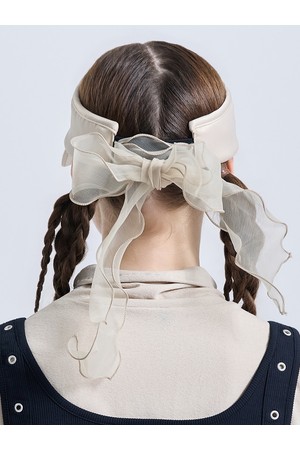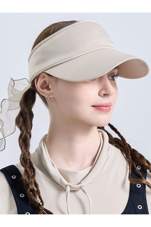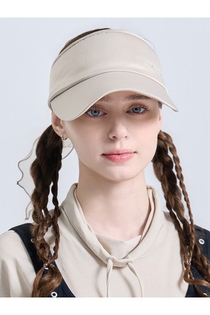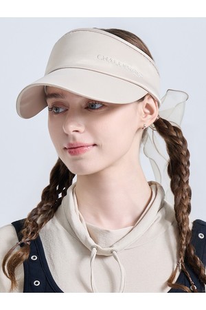 여성 메탈 로고 오간자 리본 탈부착 밴딩 썬캡 베이지