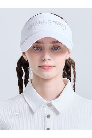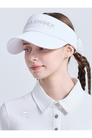 여성 픽셀 로고 리본 탈부착 밴딩 썬캡 화이트