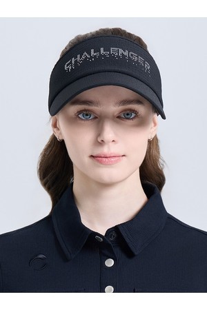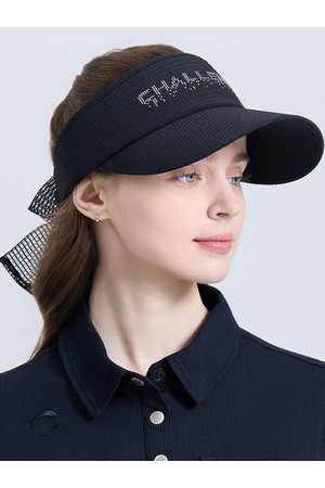 여성 픽셀 로고 리본 탈부착 밴딩 썬캡 블랙