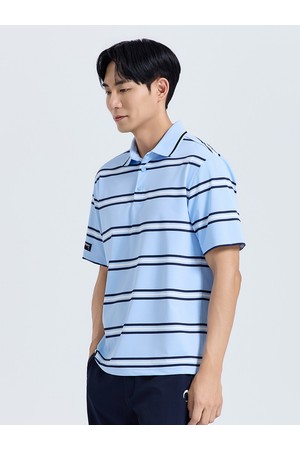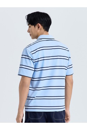 남성 컬러 포인트 스트라이프 카라 반팔 티셔츠 스카이블루