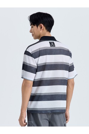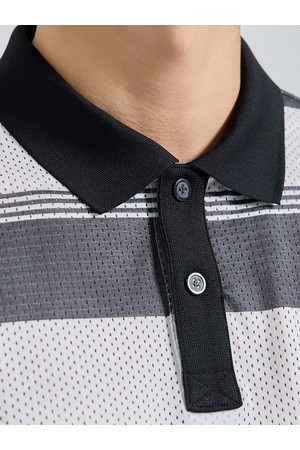남성 메쉬 스트라이프 카라 반팔 티셔츠