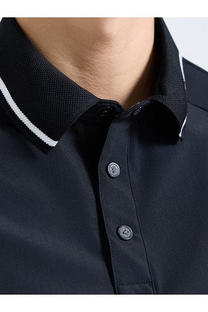 남성 스컬 포인트 카라 반팔 티셔츠 블랙