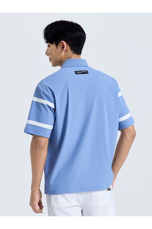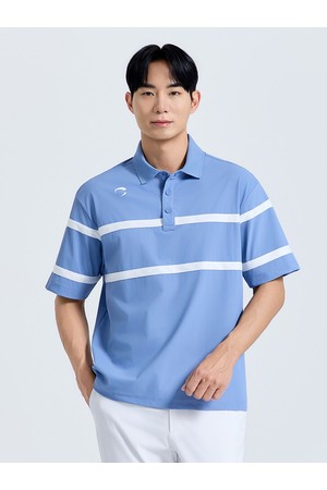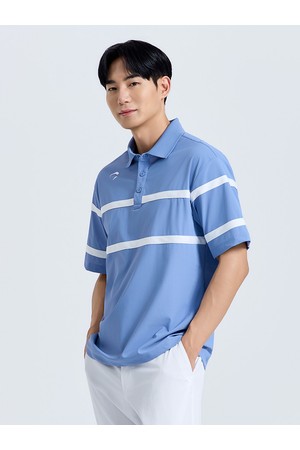 남성 보더 스트라이프 PQ 카라 반팔 티셔츠 미디엄블루