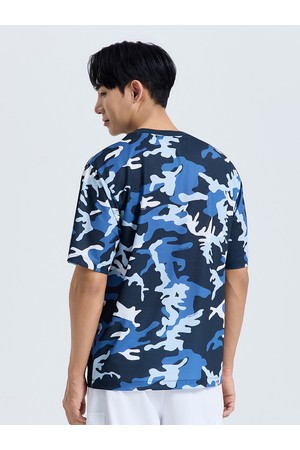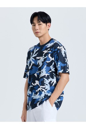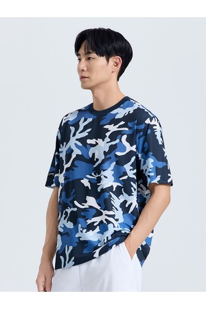 남성 카모 프린트 라운드 반팔 티셔츠 네이비