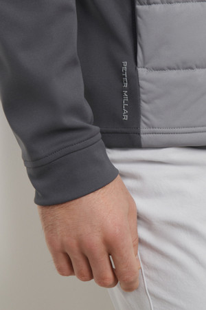 소매는 방풍 및 발수 기능을 갖춘 스트레치 니트 소재로 구성되어 있습니다.